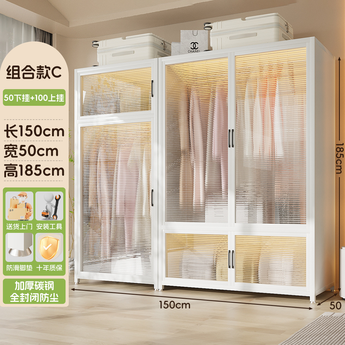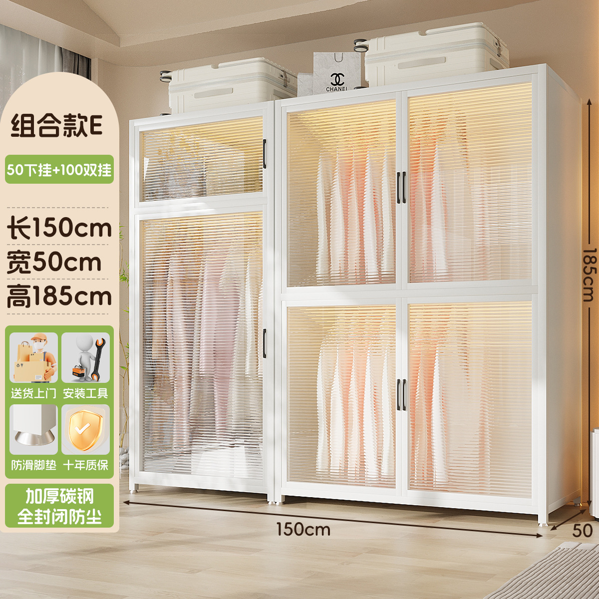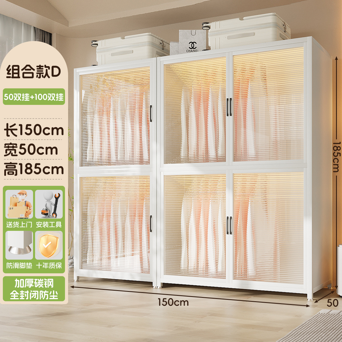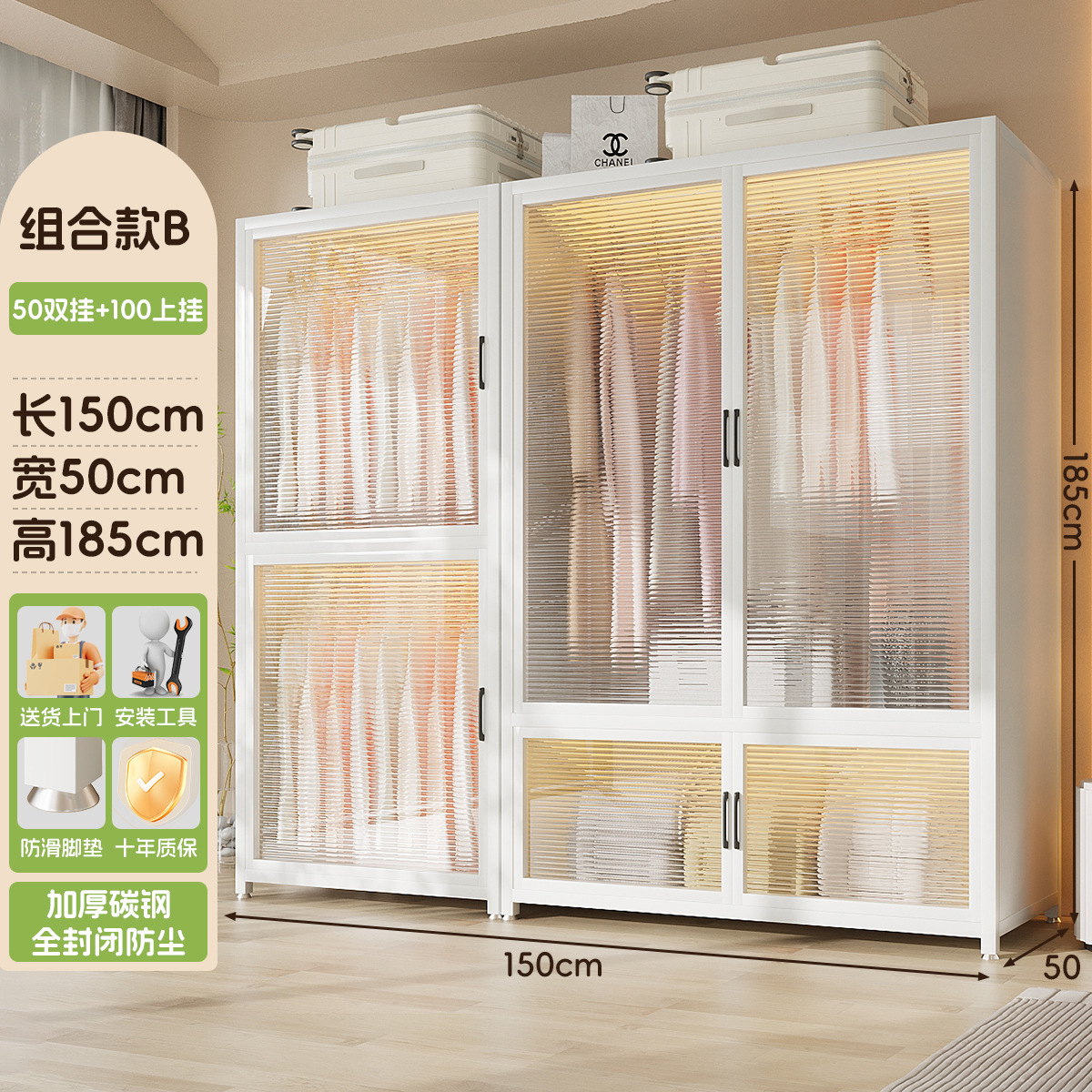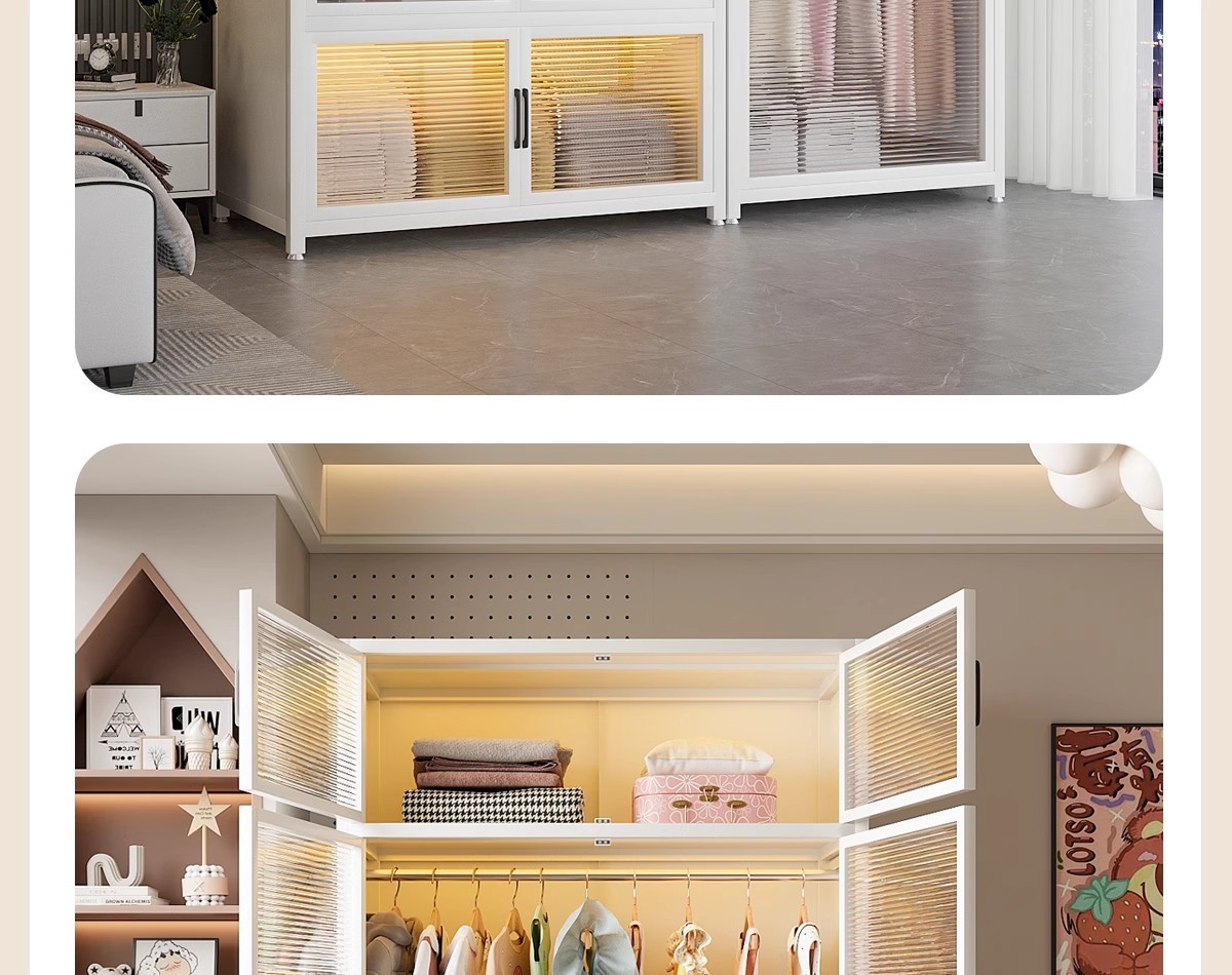 침실 홈 임대용 간단한 옷장 조립 금속 전체 강철 프레임 새로운 옷장 작은 아파트 보관 캐비닛
