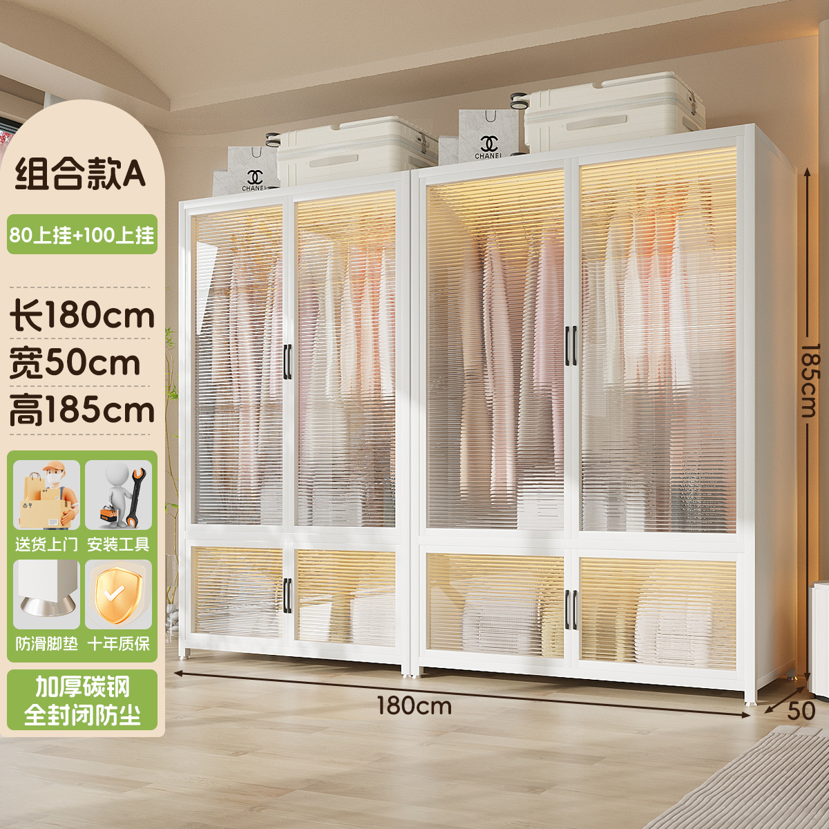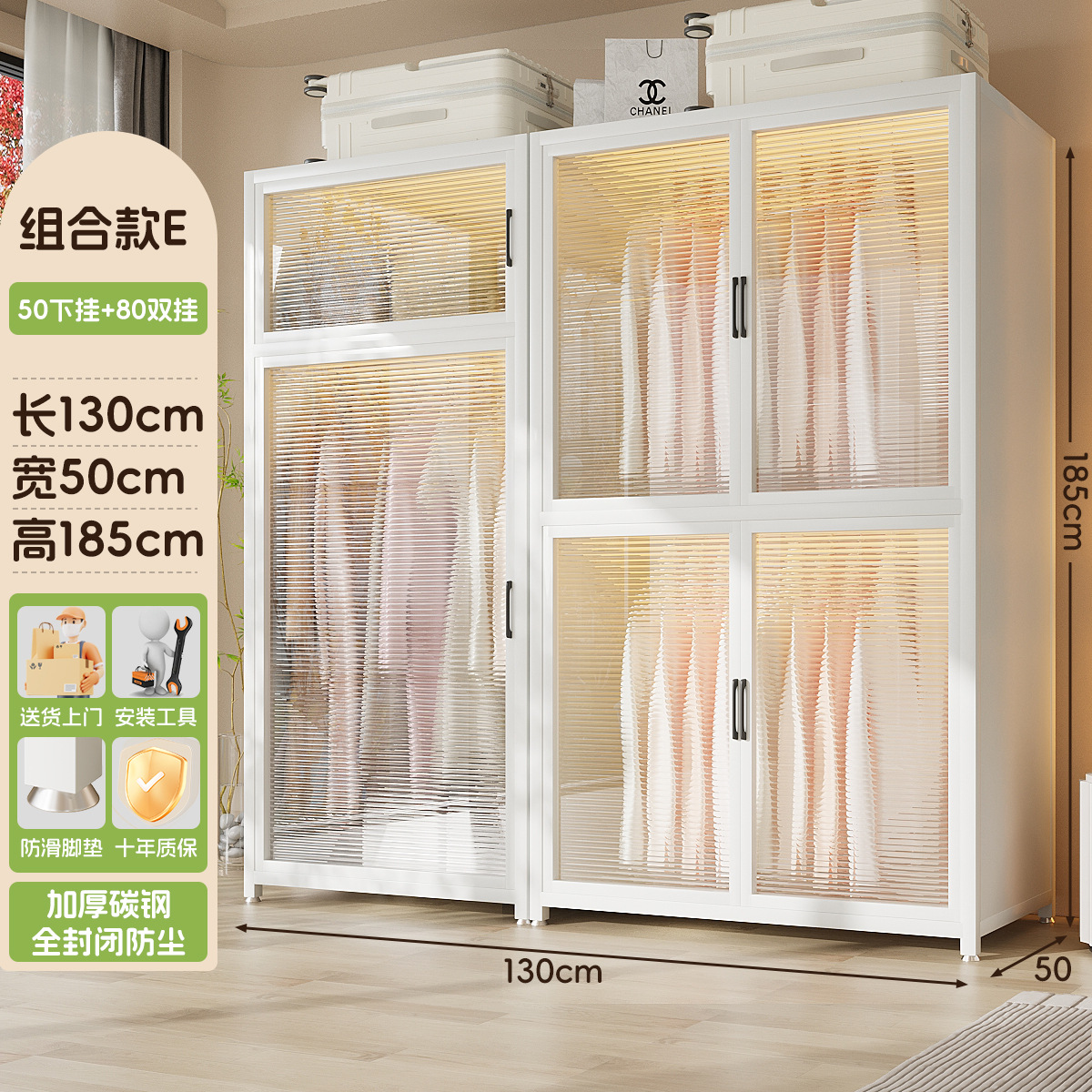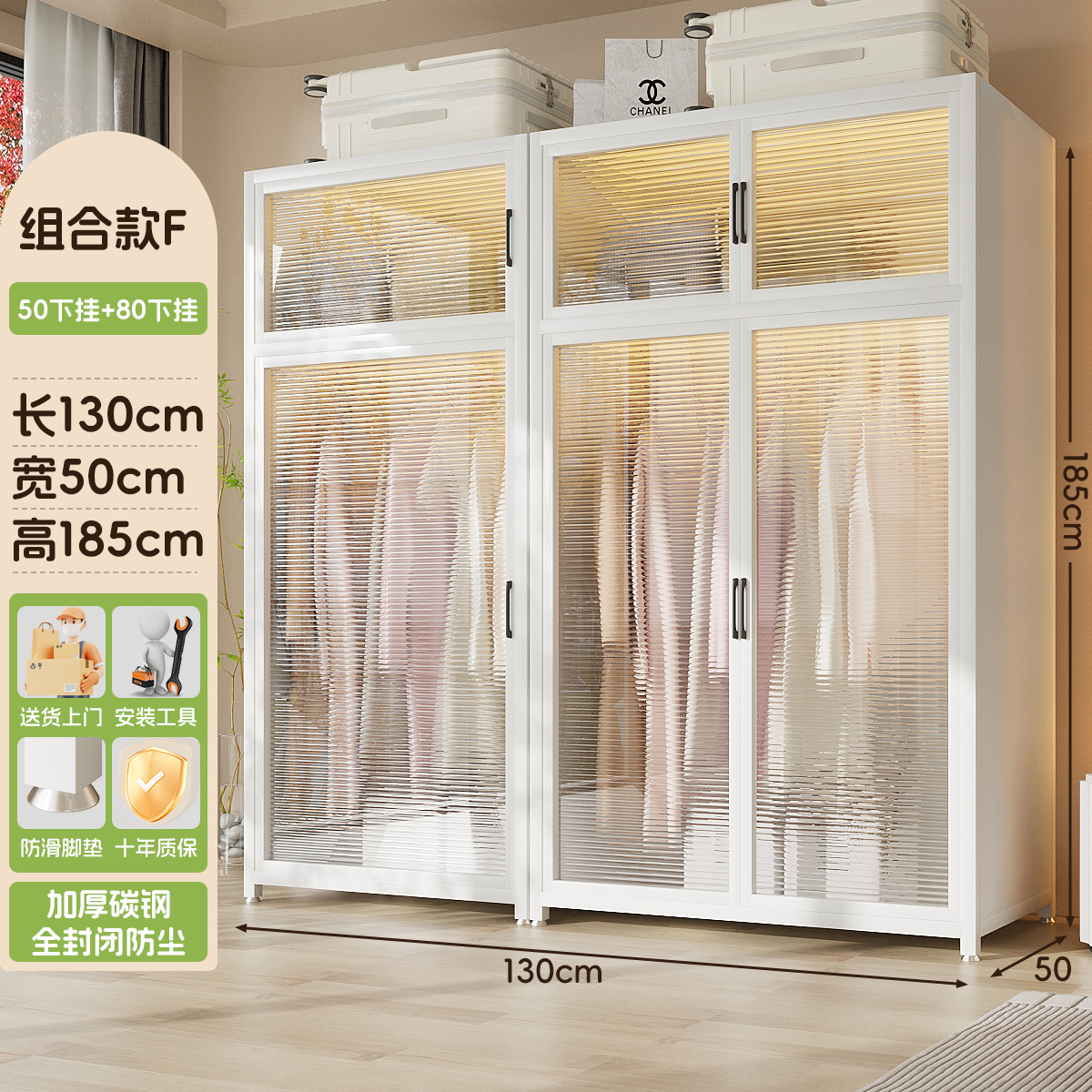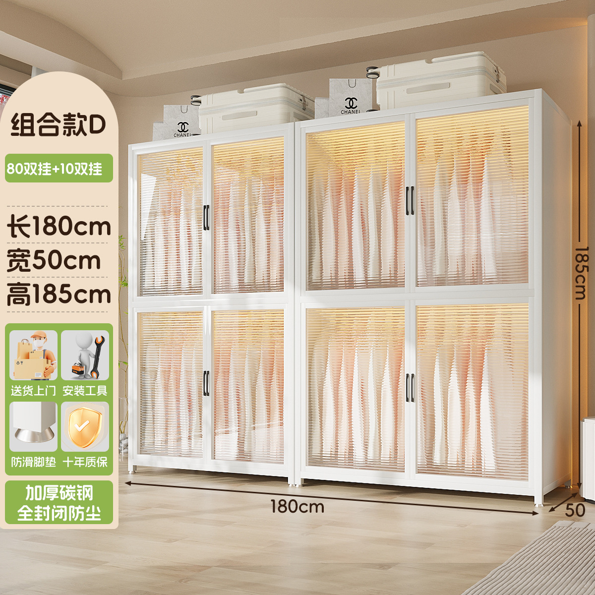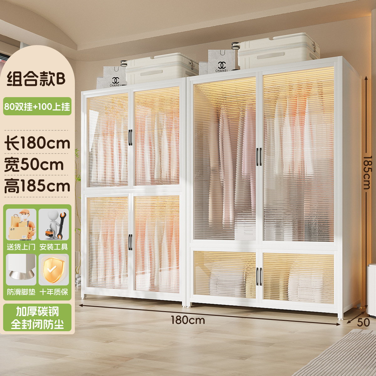 침실 홈 임대용 간단한 옷장 조립 금속 전체 강철 프레임 새로운 옷장 작은 아파트 보관 캐비닛