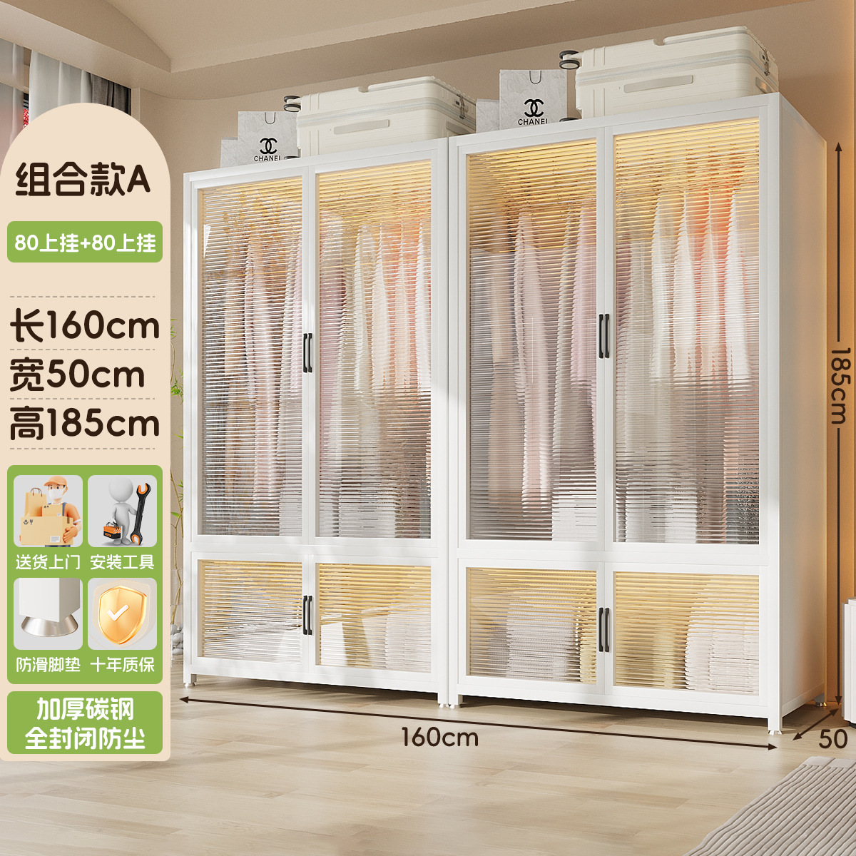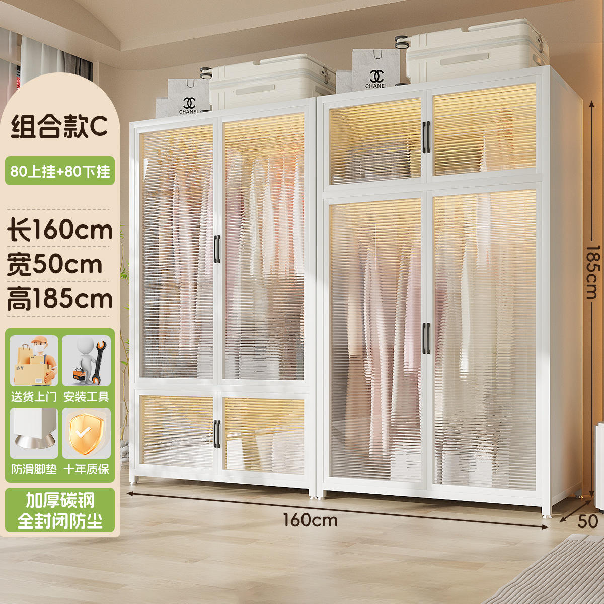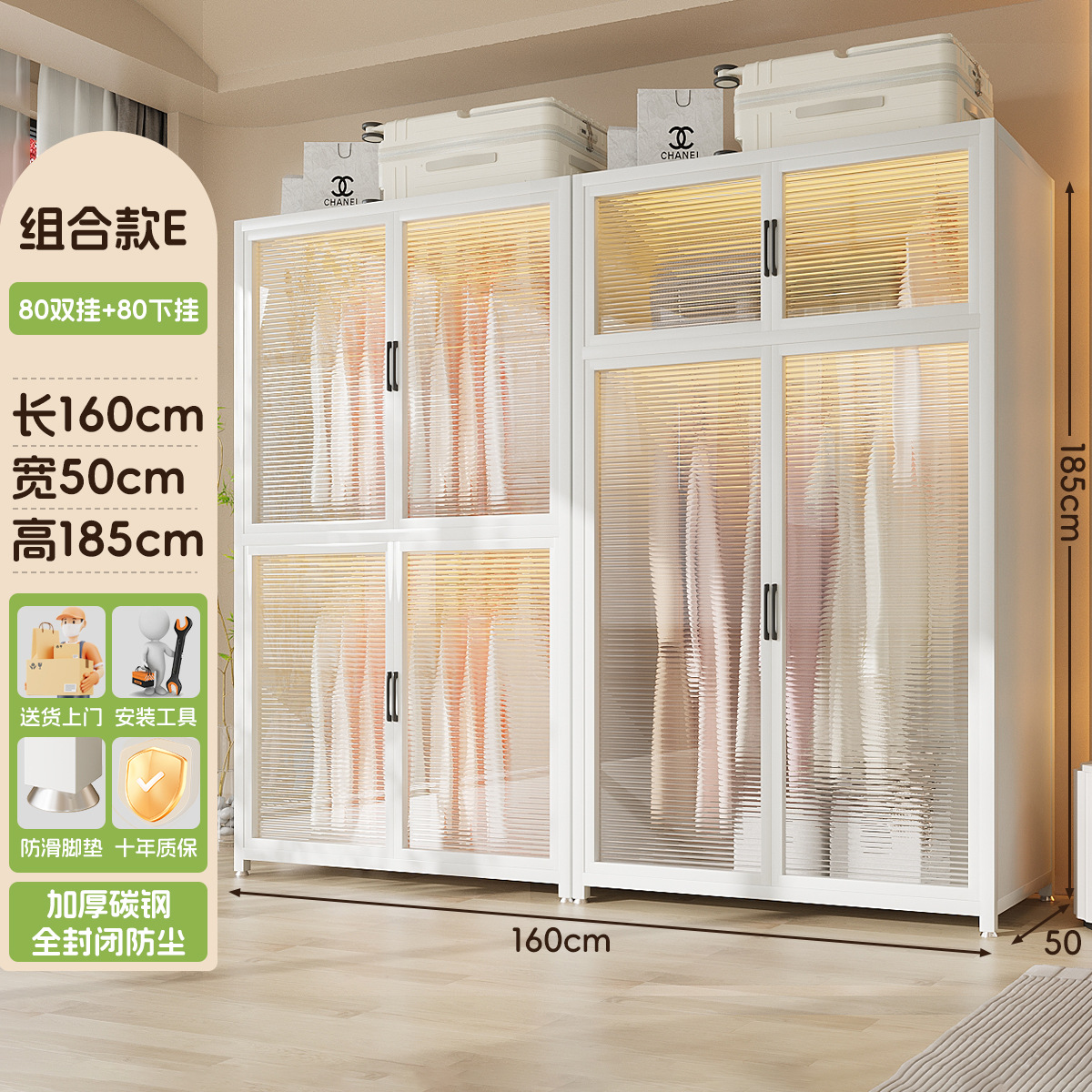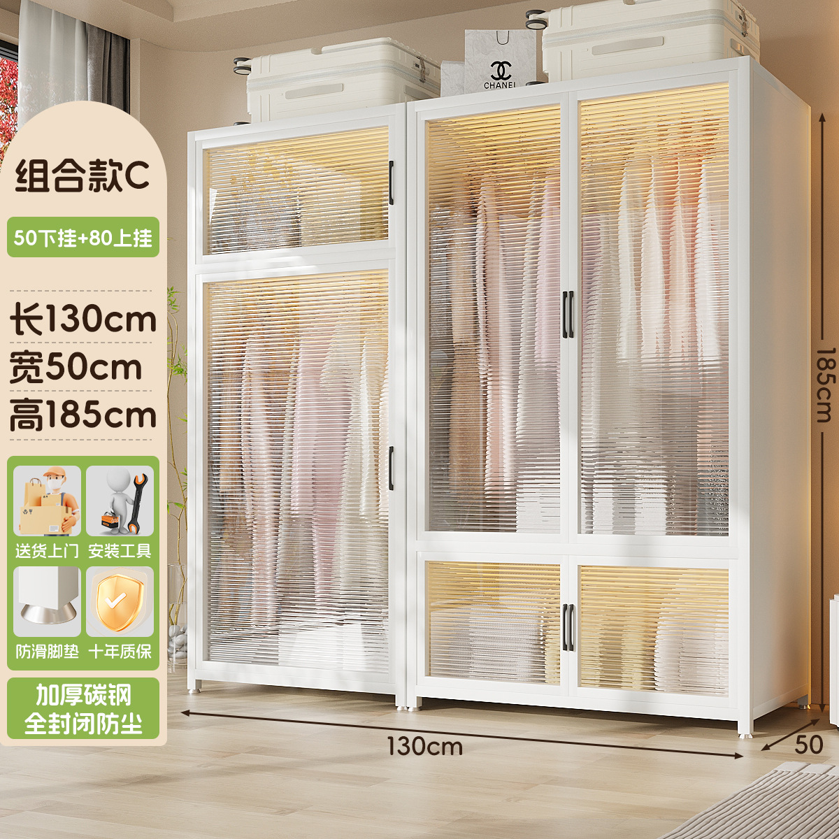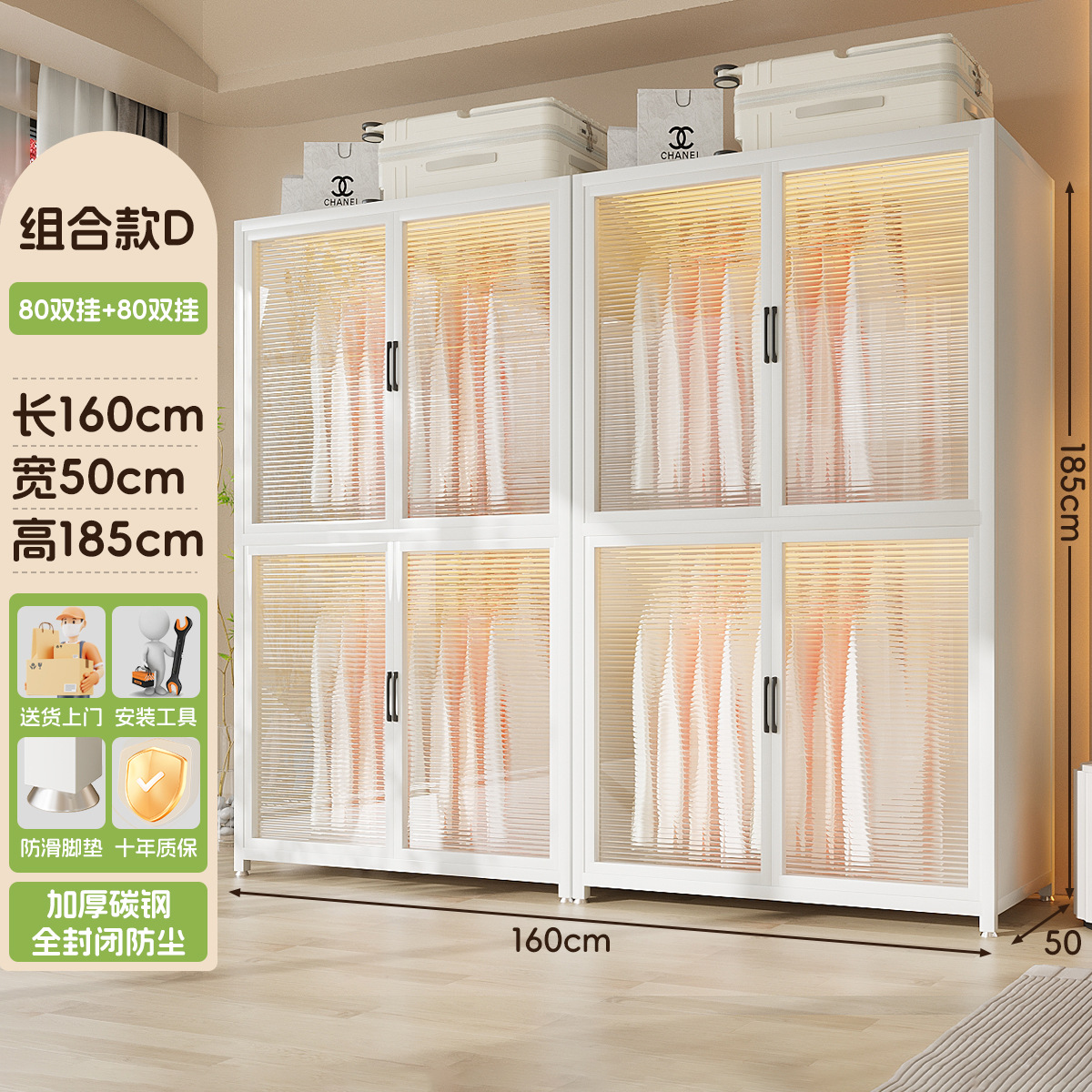 침실 홈 임대용 간단한 옷장 조립 금속 전체 강철 프레임 새로운 옷장 작은 아파트 보관 캐비닛