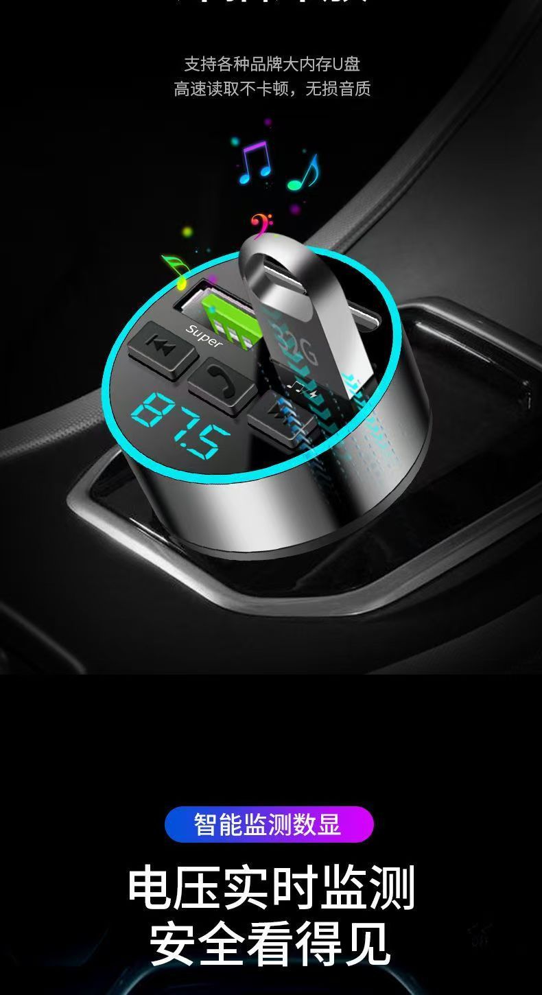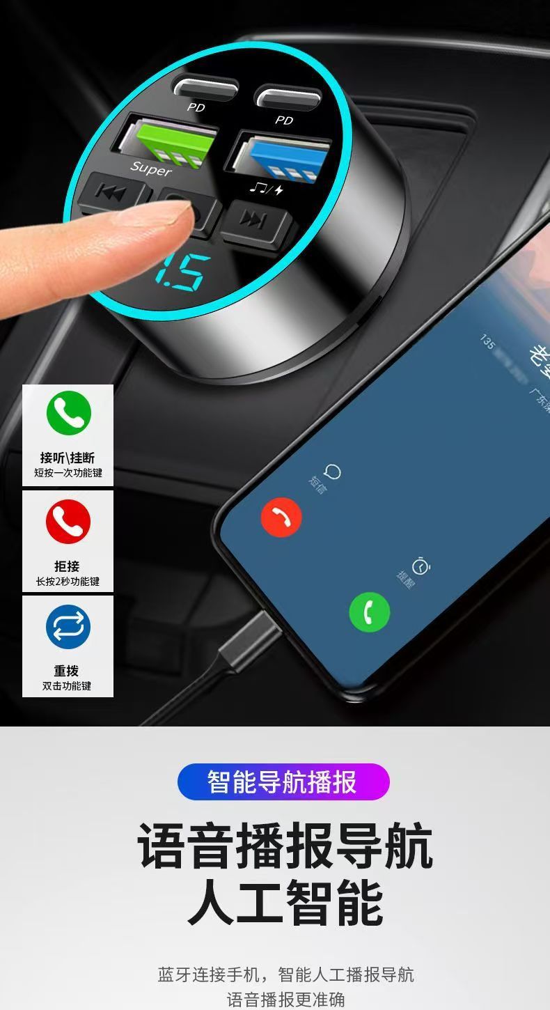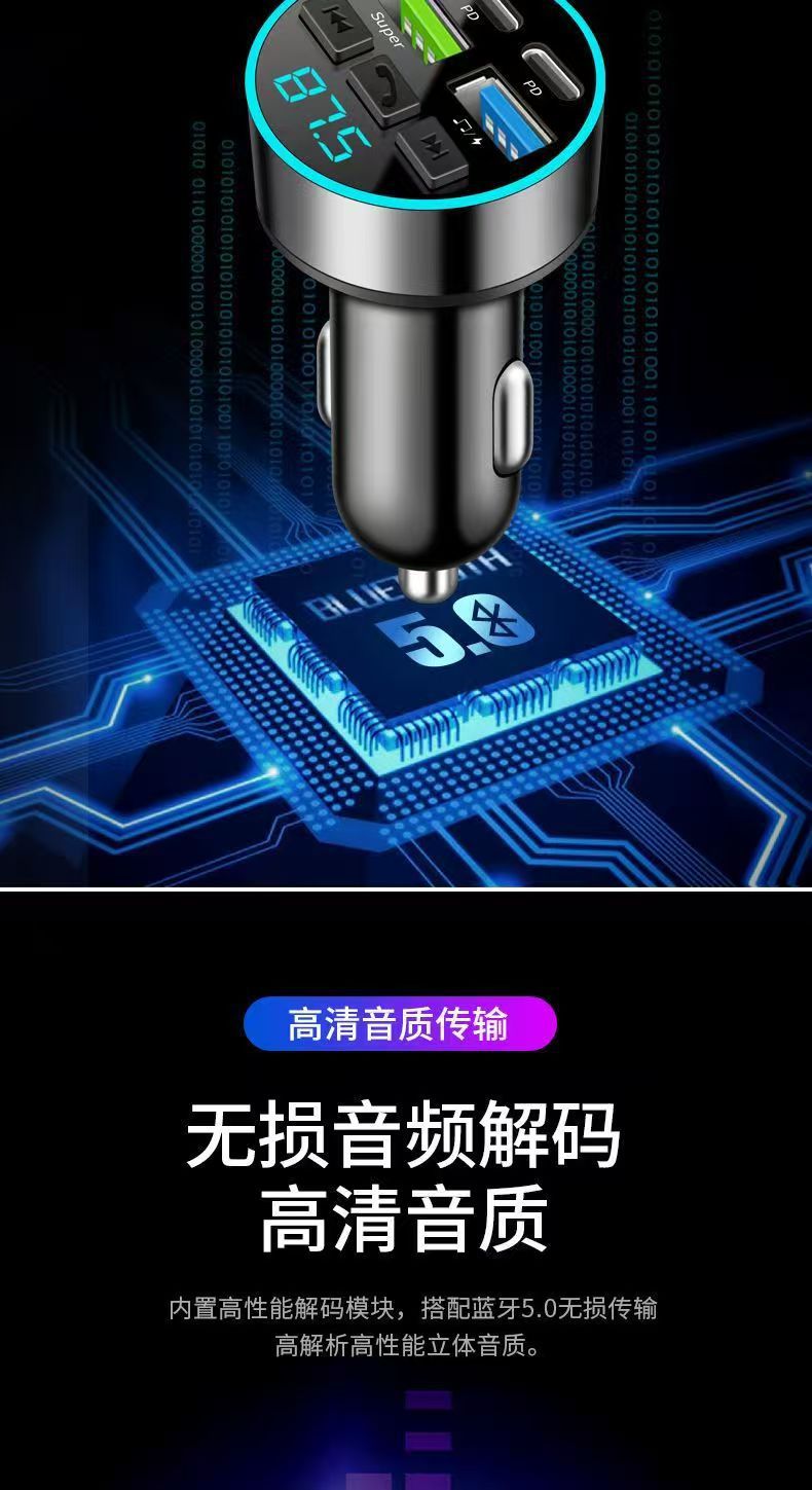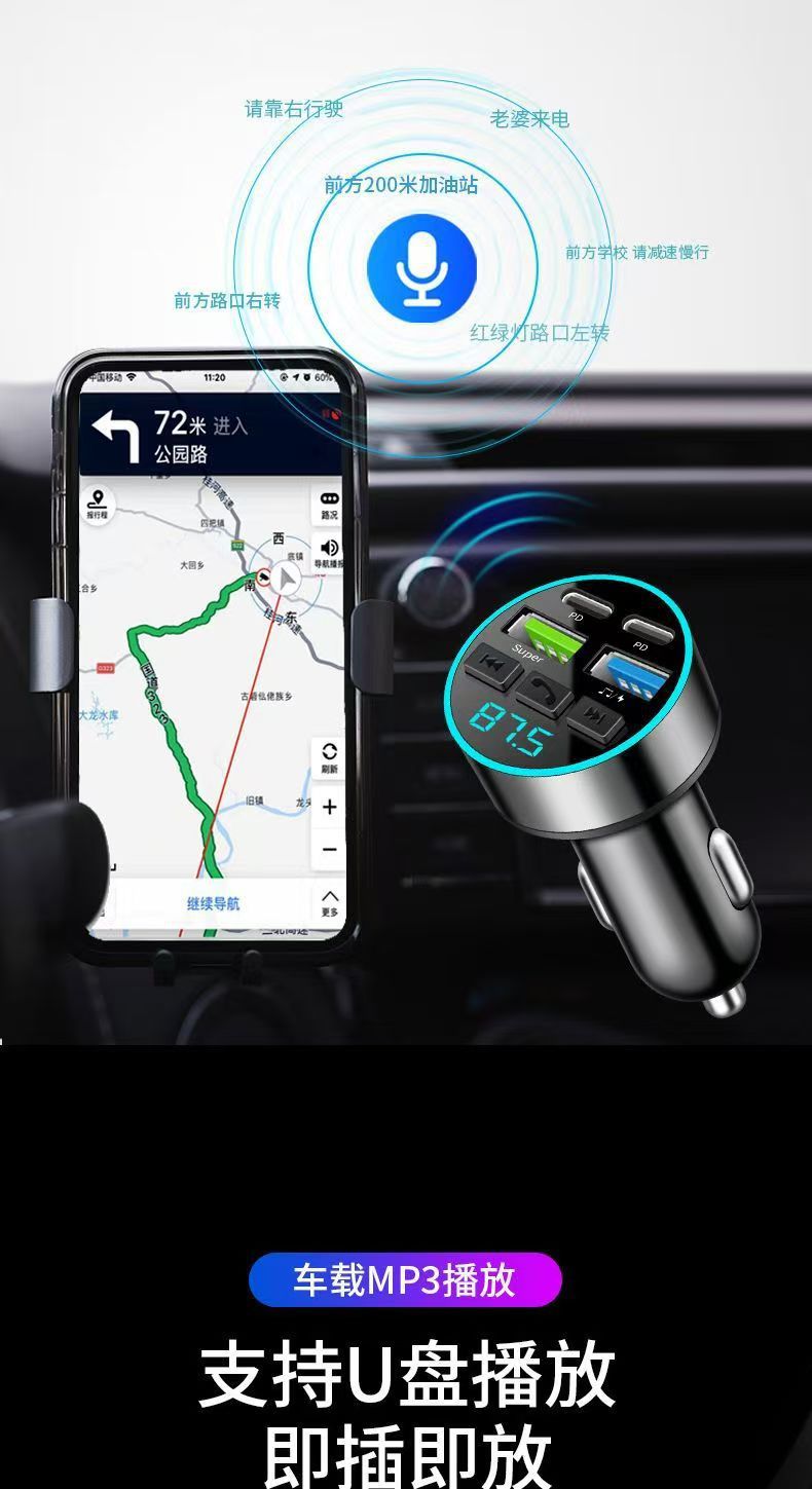 차량용 휴대폰 충전기 초고속 충전 디지털 디스플레이 블루투스 MP3 음악 플레이어 내비게이션 차량용 충전기 고음질