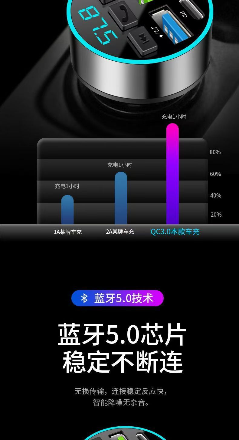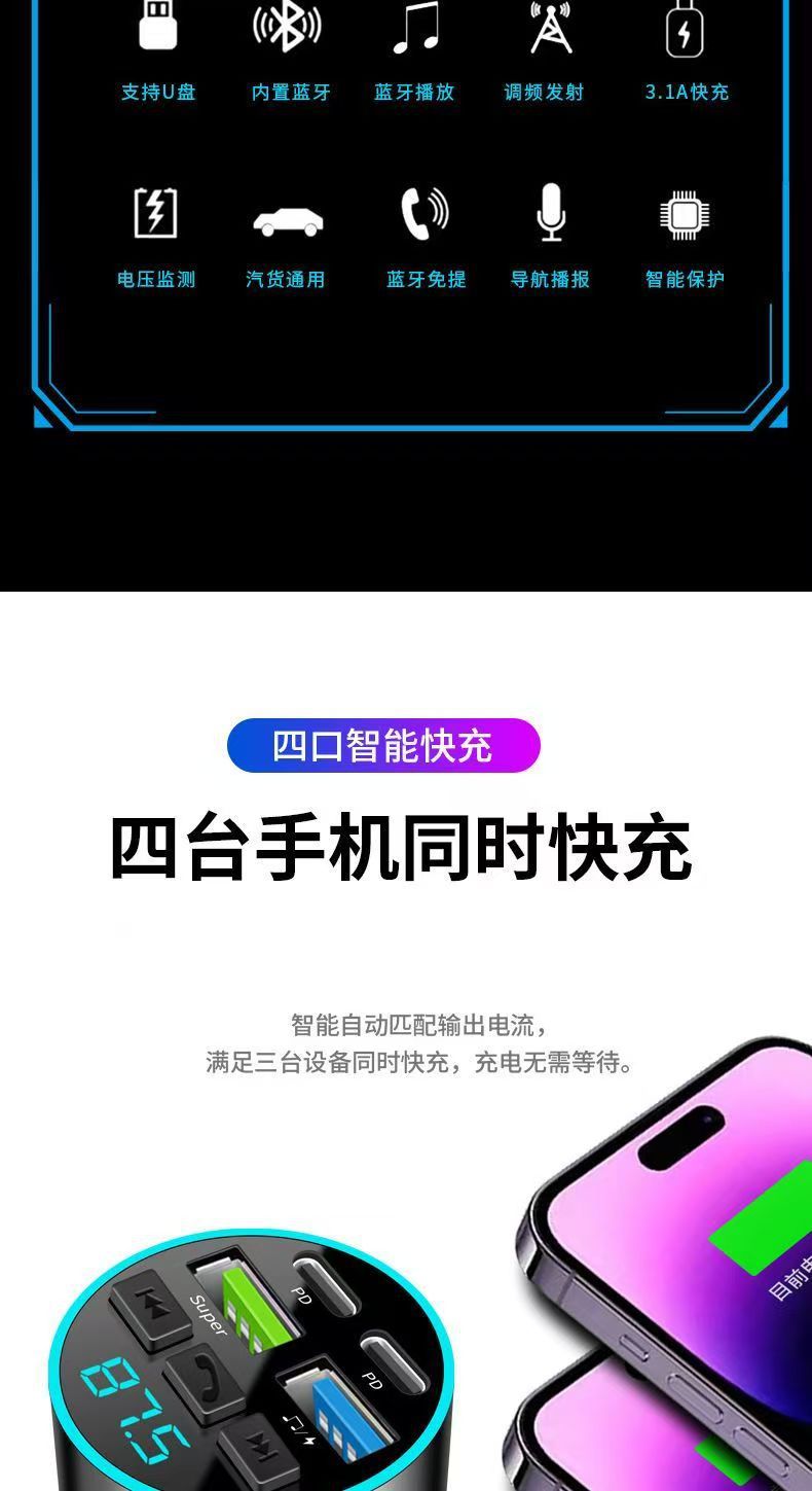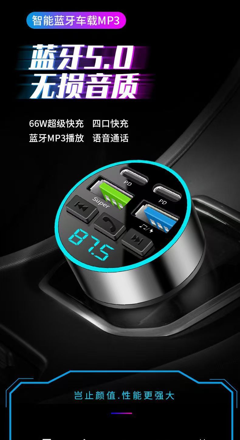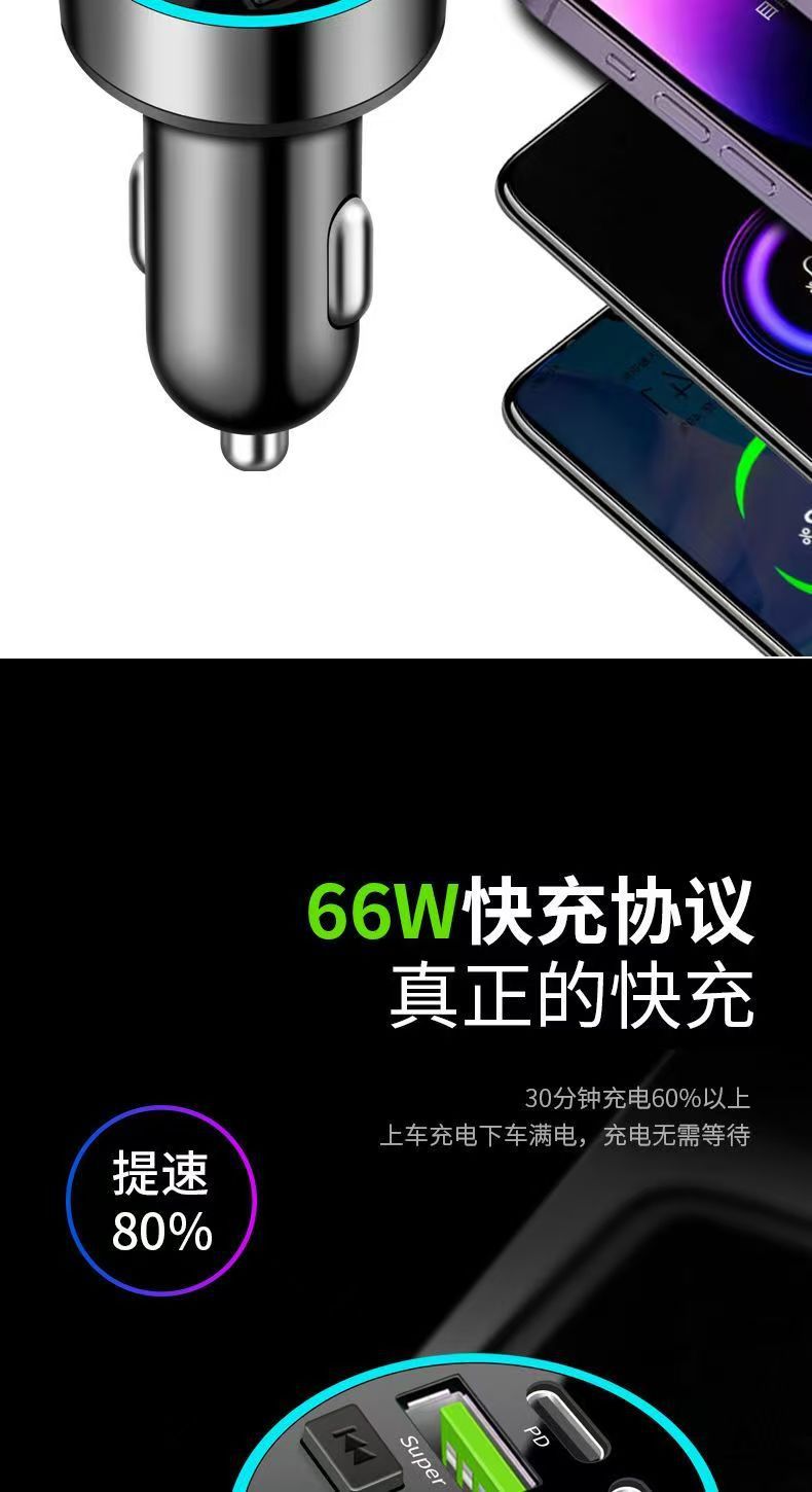 차량용 휴대폰 충전기 초고속 충전 디지털 디스플레이 블루투스 MP3 음악 플레이어 내비게이션 차량용 충전기 고음질
