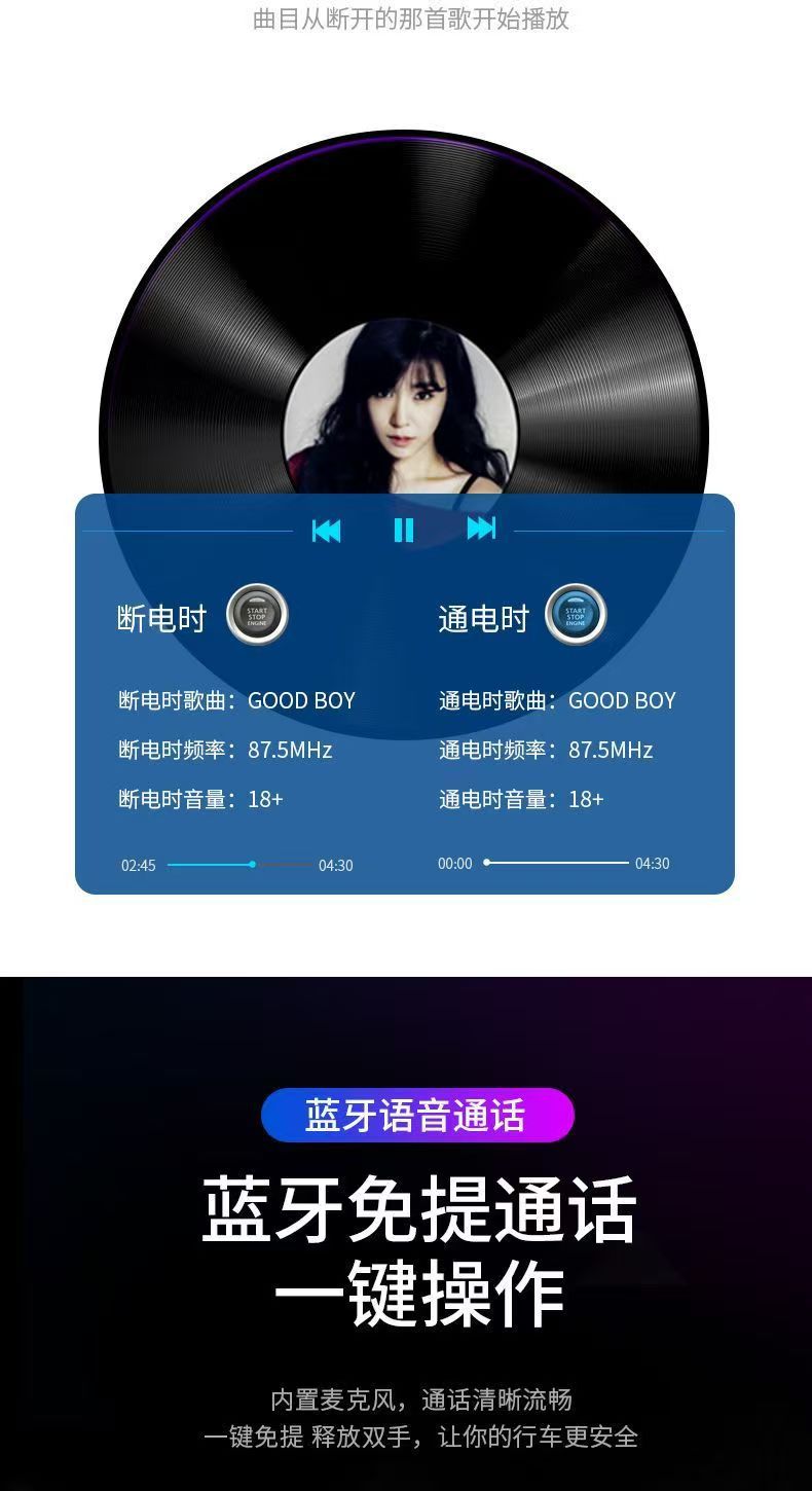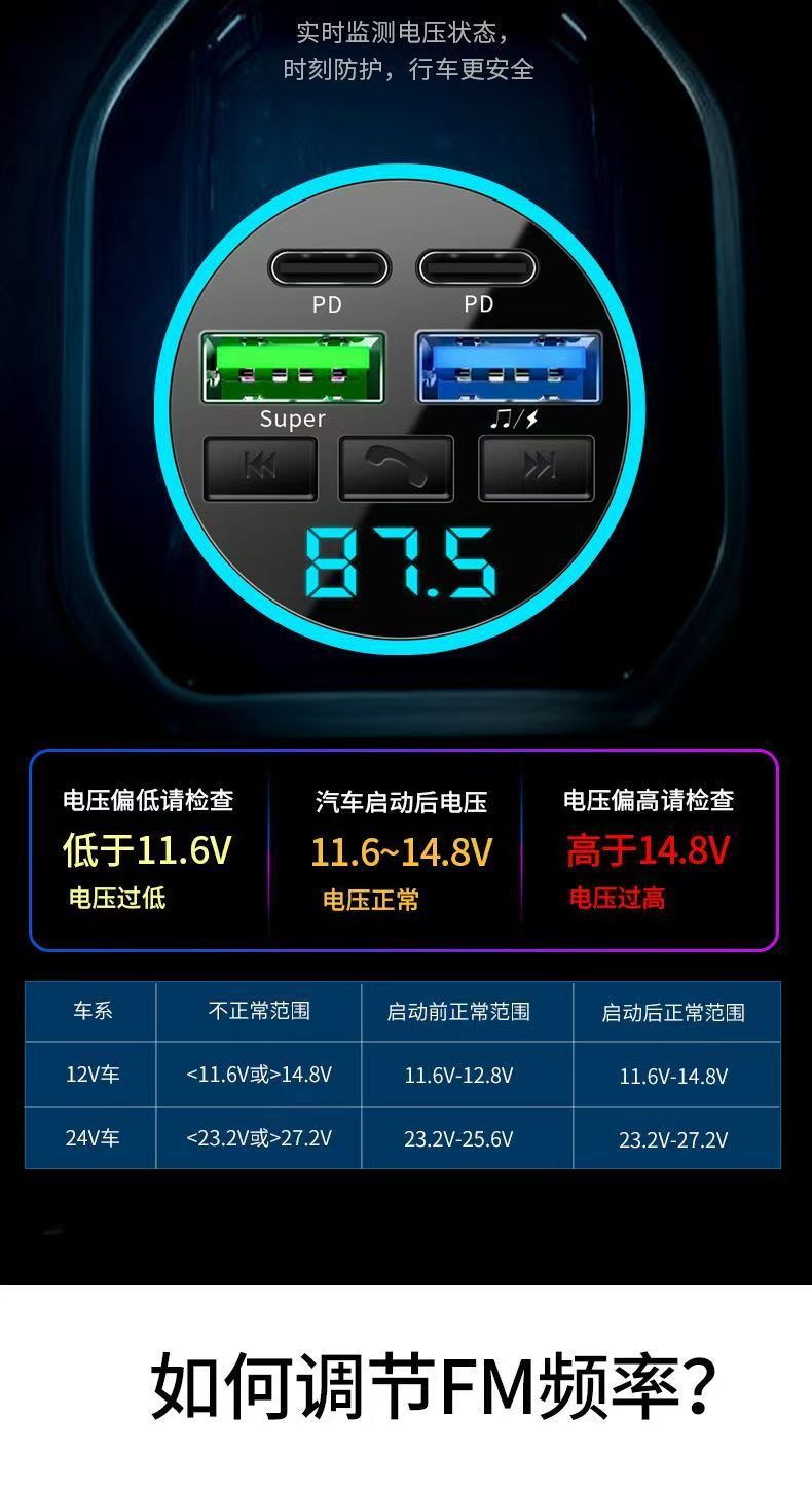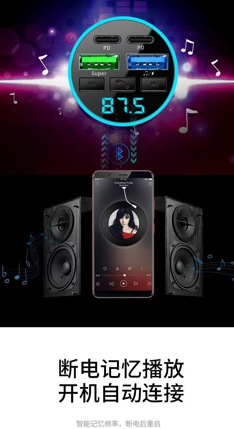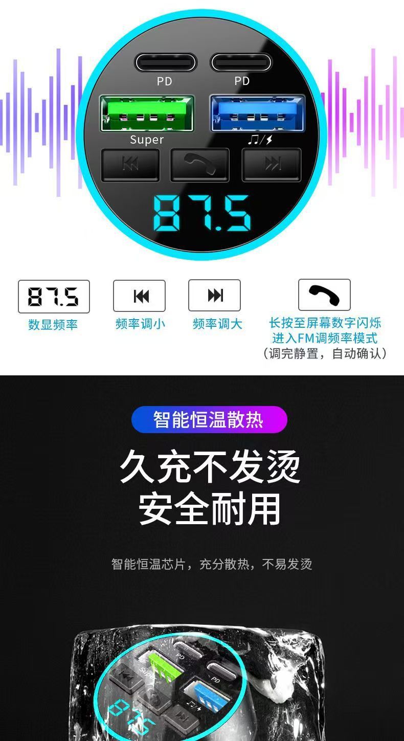 차량용 휴대폰 충전기 초고속 충전 디지털 디스플레이 블루투스 MP3 음악 플레이어 내비게이션 차량용 충전기 고음질