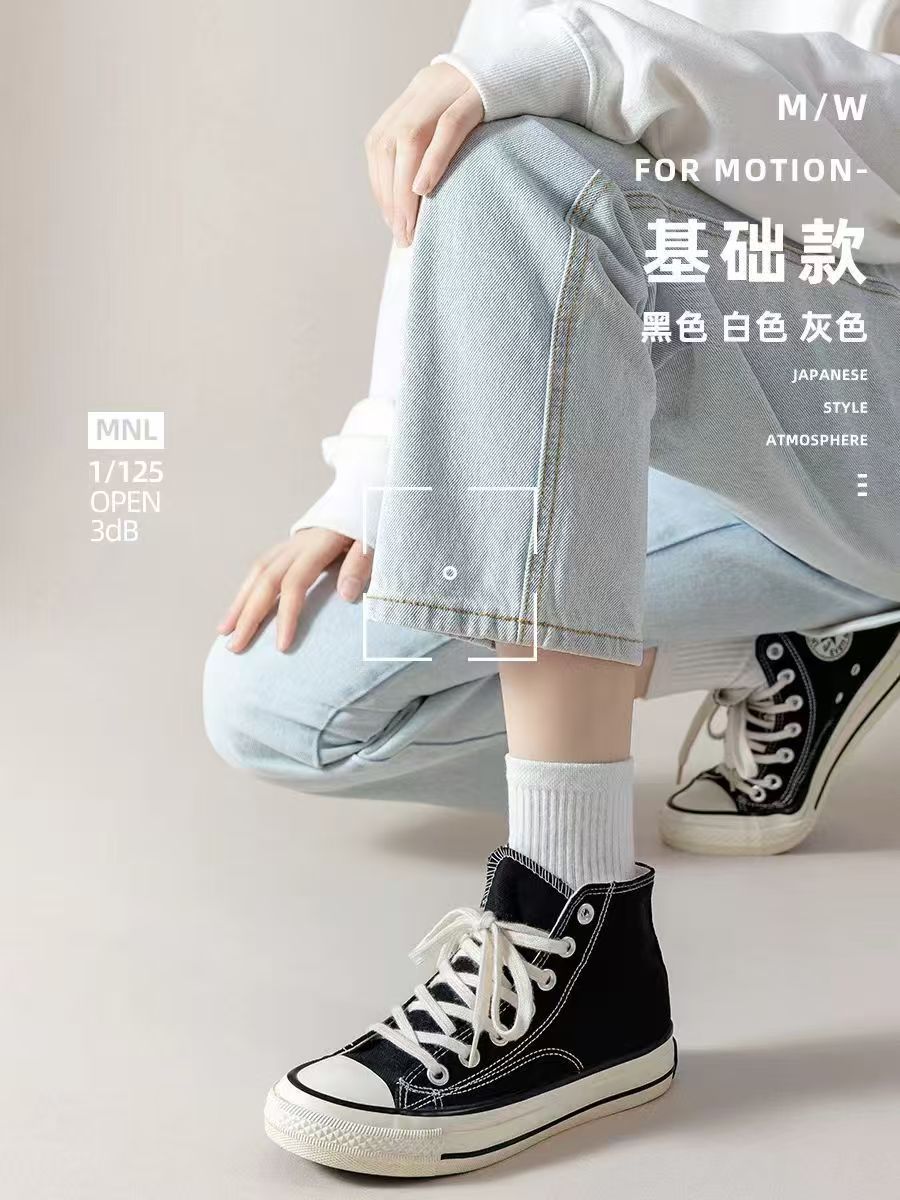 신장면 남녀공용 중간길이 단색 스포츠 양말 트렌디 캐주얼 다용도 땀흡수 통기성 양말스토어 가기