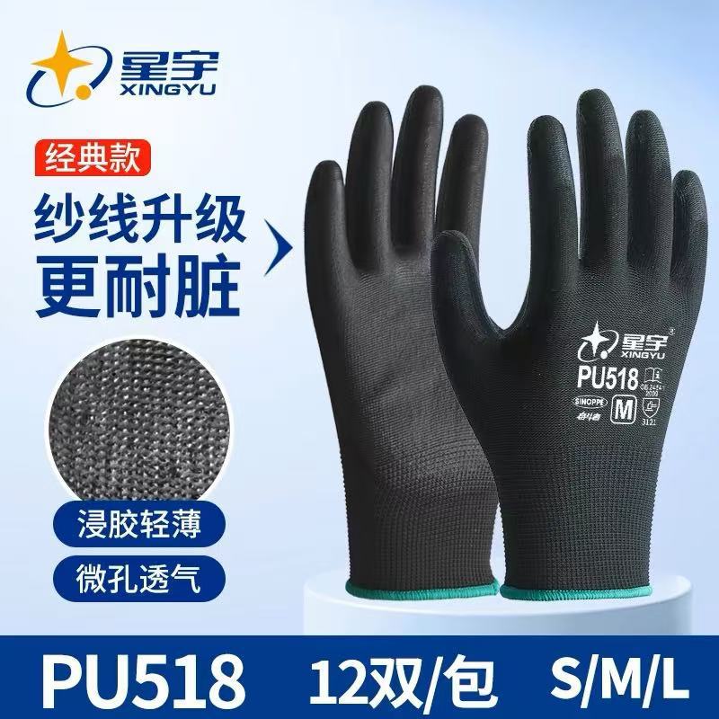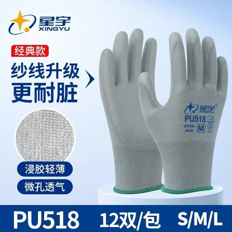 Xingyu 얇은 노동 보호 장갑 PU518 정전기 방지 통기성 고무 코팅 손바닥 노동 작업 여름 장갑