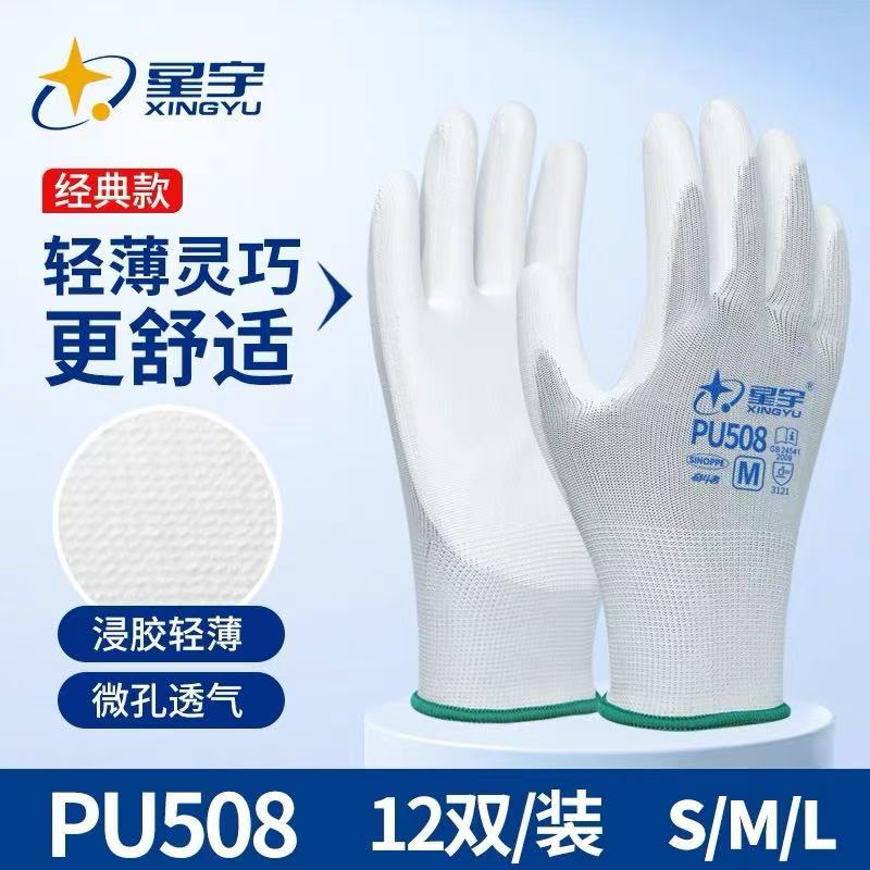 Xingyu 얇은 노동 보호 장갑 PU518 정전기 방지 통기성 고무 코팅 손바닥 노동 작업 여름 장갑스토어 가기