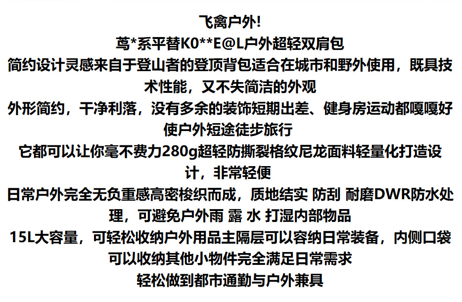 280G 초경량 찢어짐 방지 나일론 15L 대용량 커플 격자 무늬 배낭 여행 하이킹 배낭