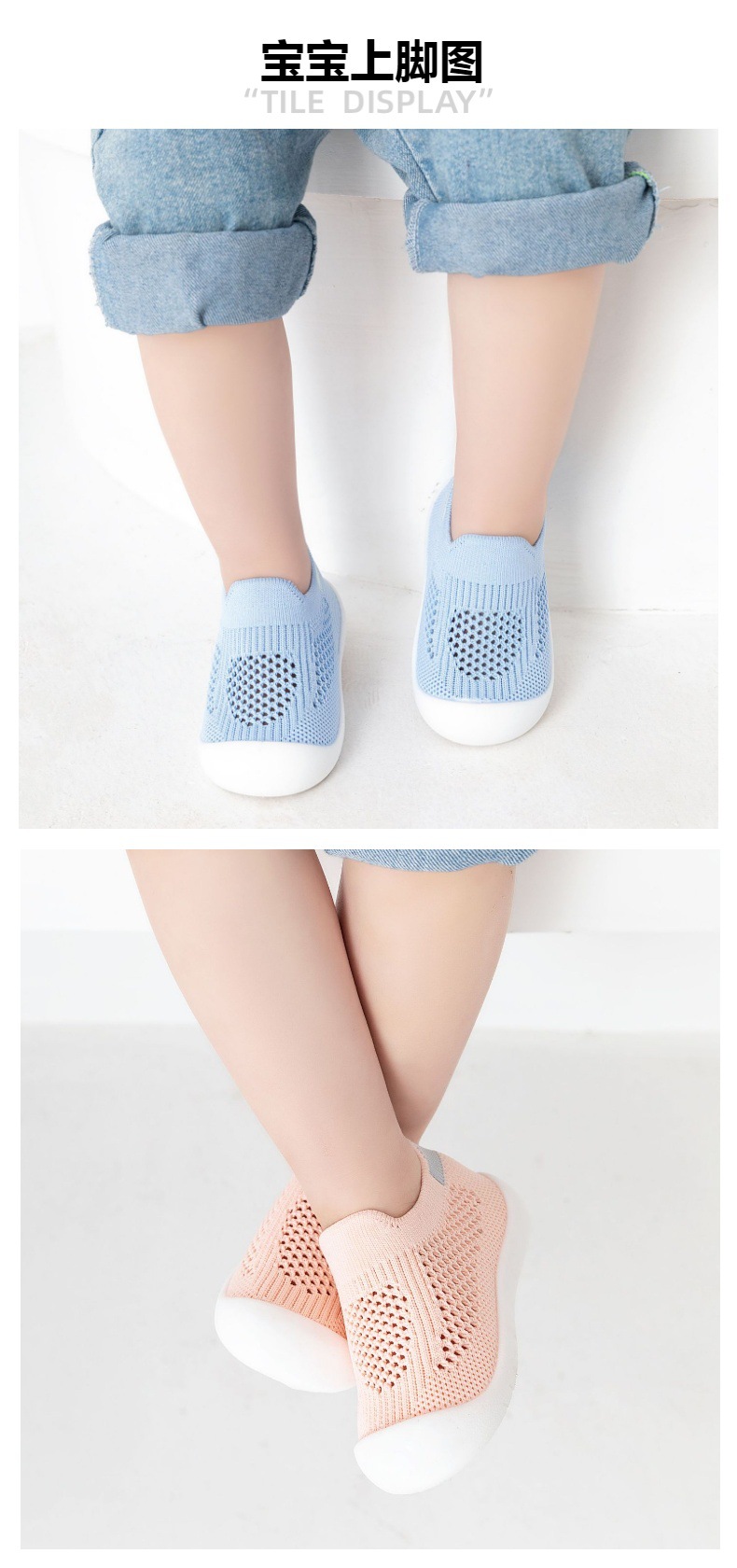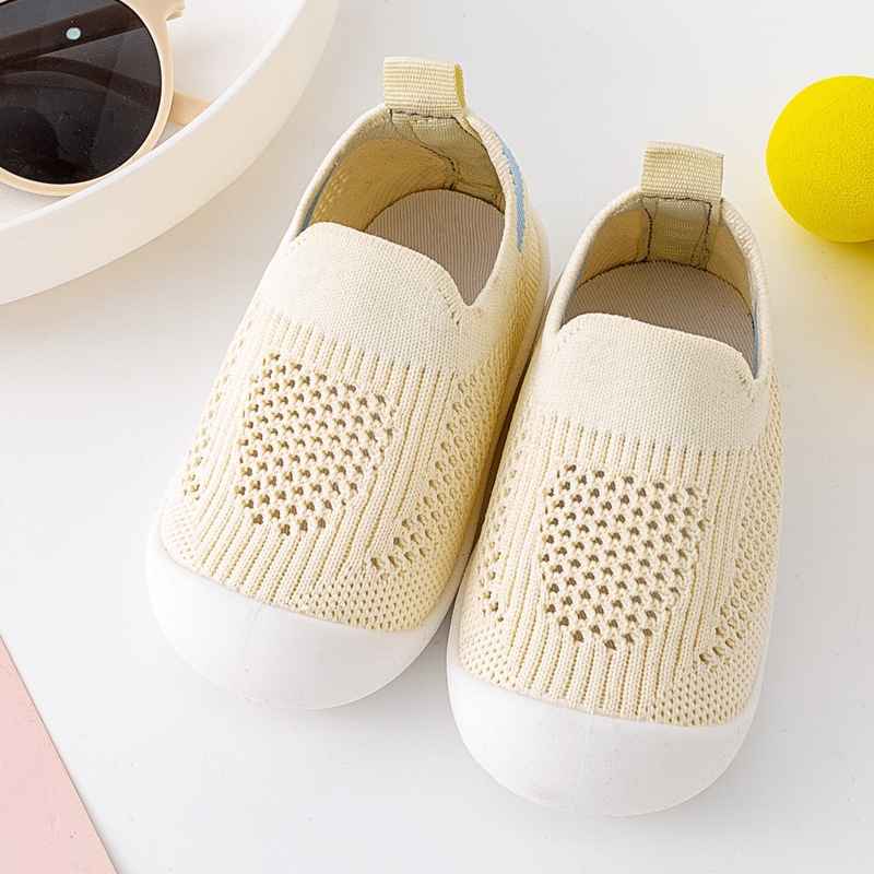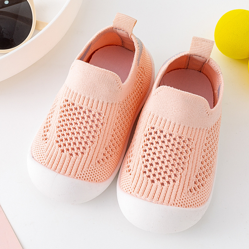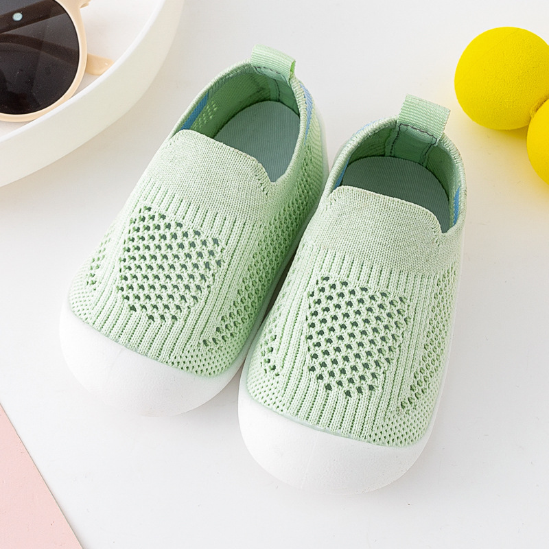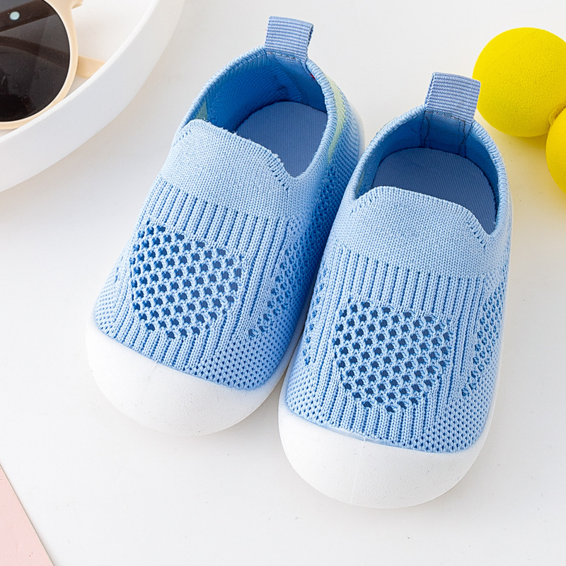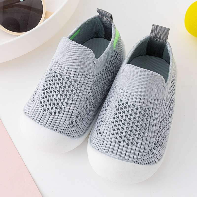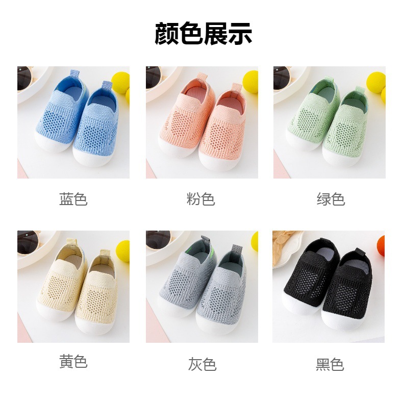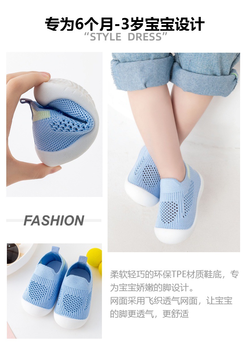 아기 유아 신발 부드러운 단독 미끄럼 방지 바닥 신발 봄 및 여름 통기성 플라이 짠 신발 실내 및 야외 양말 신발 소년 소녀스토어 가기