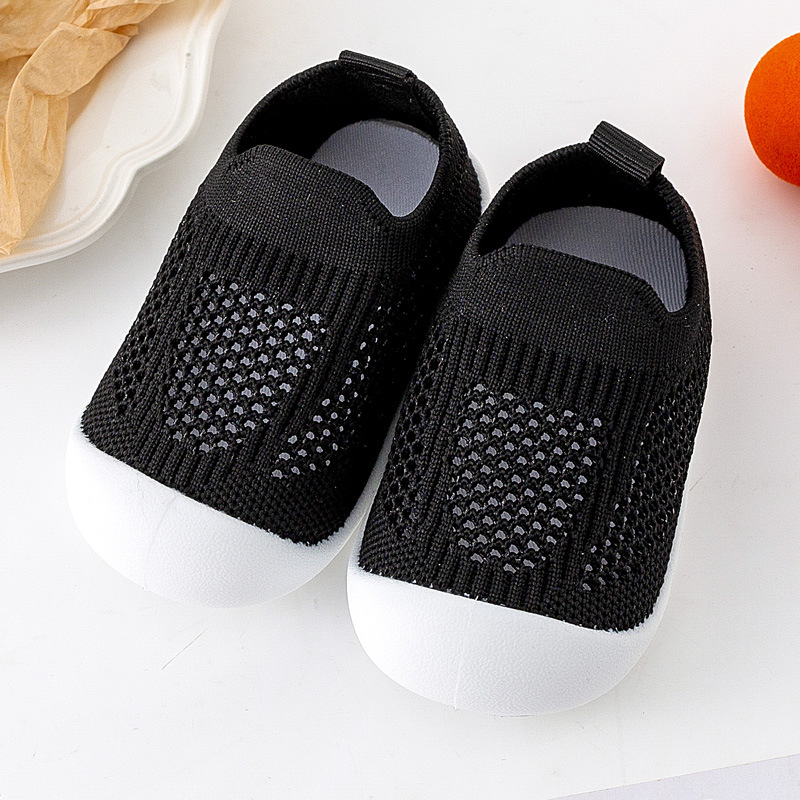 아기 유아 신발 부드러운 단독 미끄럼 방지 바닥 신발 봄 및 여름 통기성 플라이 짠 신발 실내 및 야외 양말 신발 소년 소녀