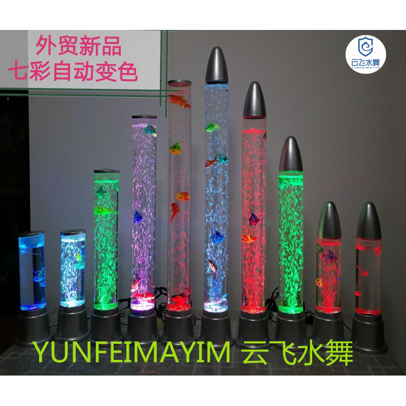 다채로운 물고기 랜턴 야간 조명 워터 컬럼 플랫 커버 색상 변경 물고기 탱크 원통형 해파리 색상 변경 램프 라이트스토어 가기