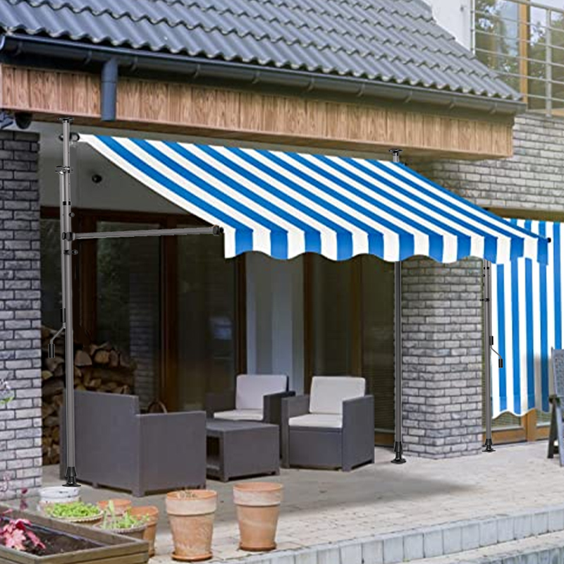 • 길이 3.5m * 확장 1.2m + 파란색과 흰색 줄무늬 타포린 + 회색 브래킷