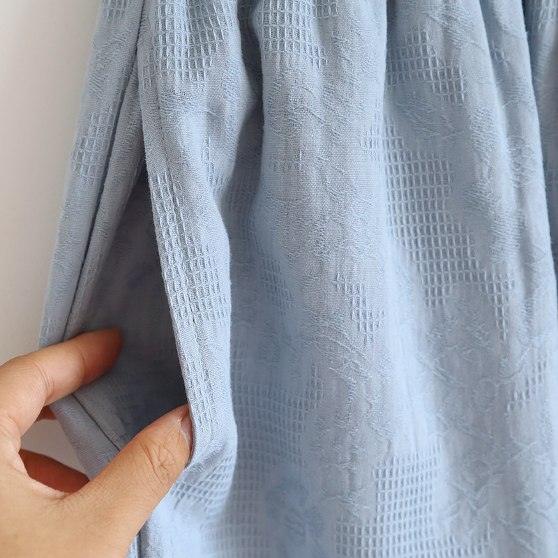 간단한 Azure Blue Pajamas 여성의 봄, 여름 및 가을 반팔 3 피스 퓨어 코튼 얇은 홈 의류 간단하고 편안한 외주