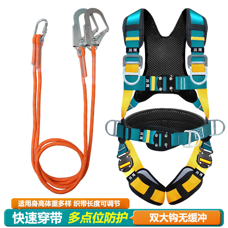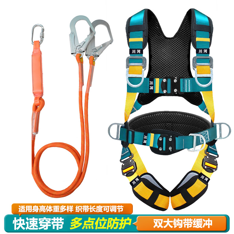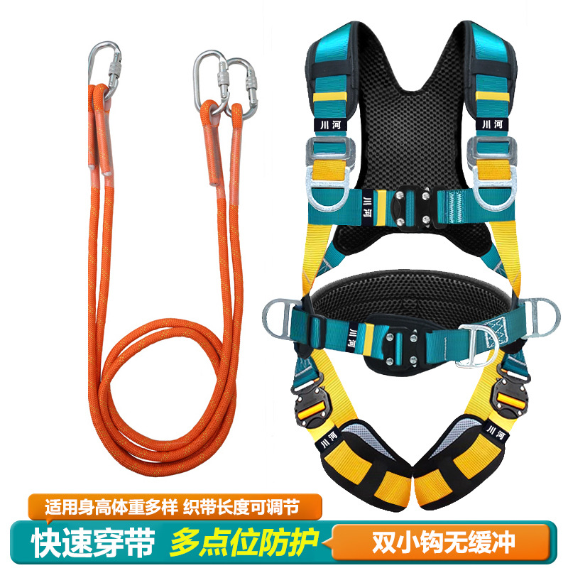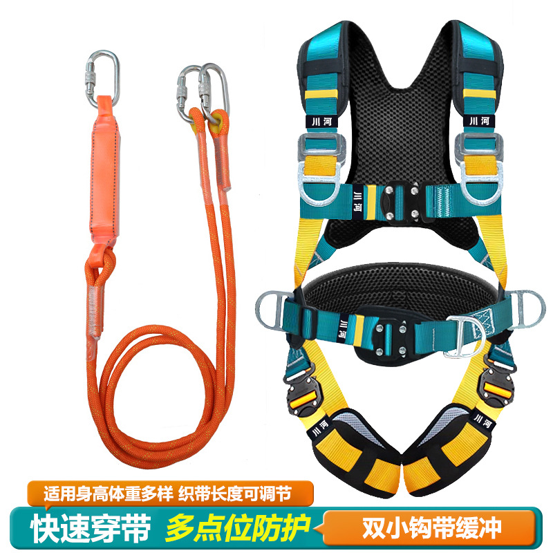 5점식 안전벨트, 에어컨 장착, 실외확장, 추락방지, 국제안전로프, 더블후크, 버퍼안전벨트