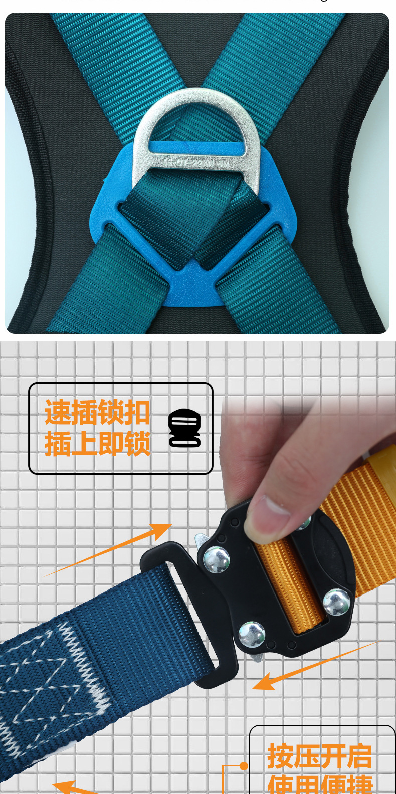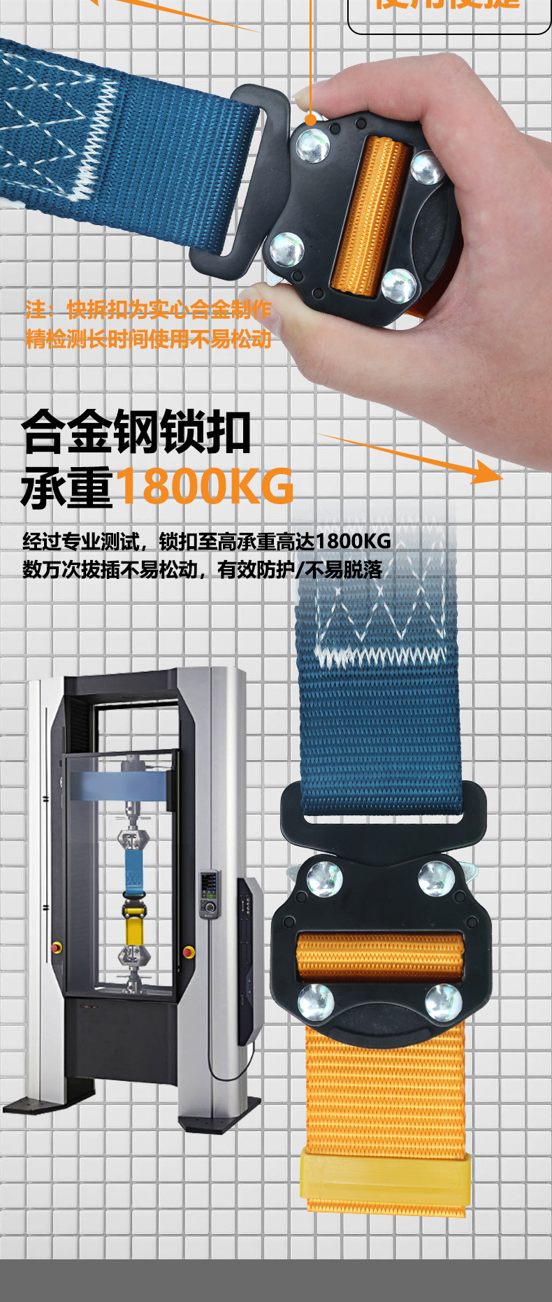 • 퀵 릴리스 버클. 버퍼 싱글 후크 1.8(허리 및 다리 보호대 포함)