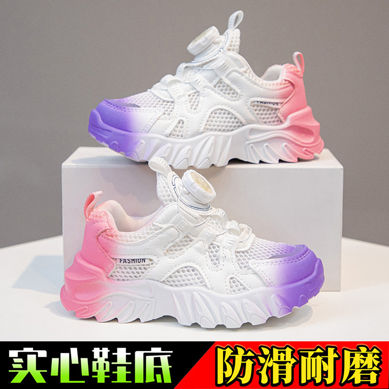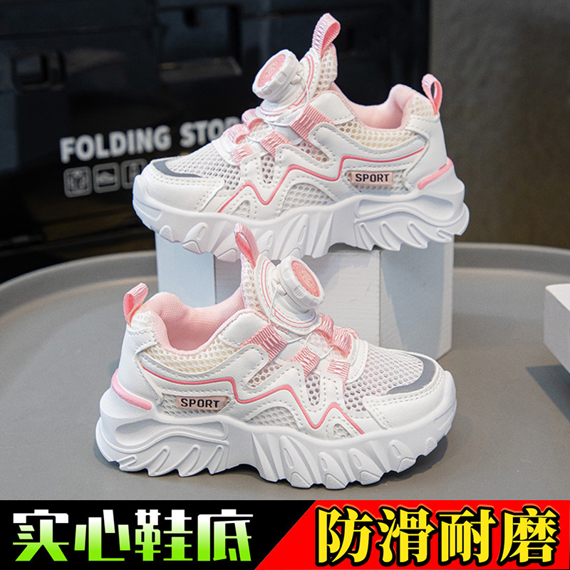 아동 운동화, 여아 아빠 신발, 봄 가을 신상품 통기성 여아 메쉬 신발, 다용도 부드러운 밑창 흰색 신발스토어 가기