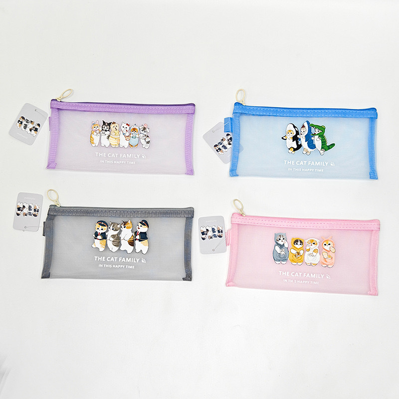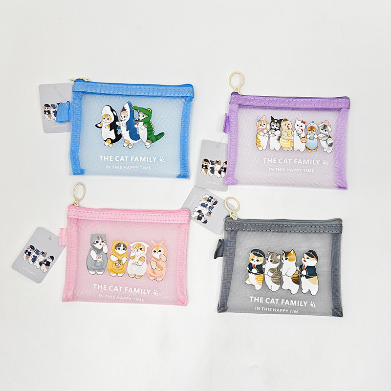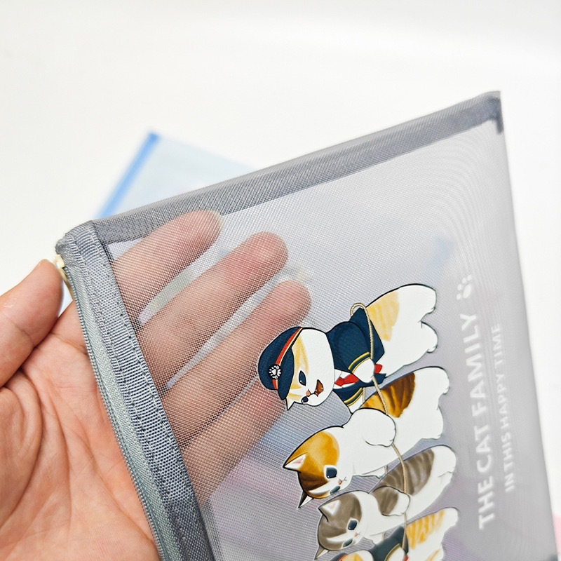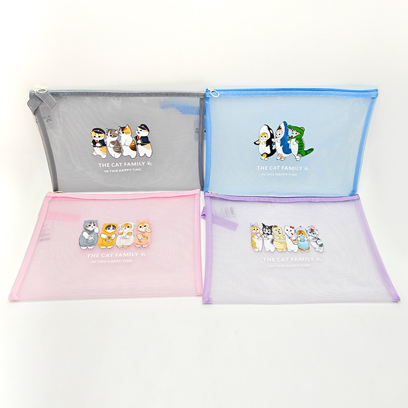 귀여운 상어 고양이 A5 파일 가방 투명 메쉬 핸드백 학생 과목 분류 보관 가방 단일 레이어 지퍼 가방