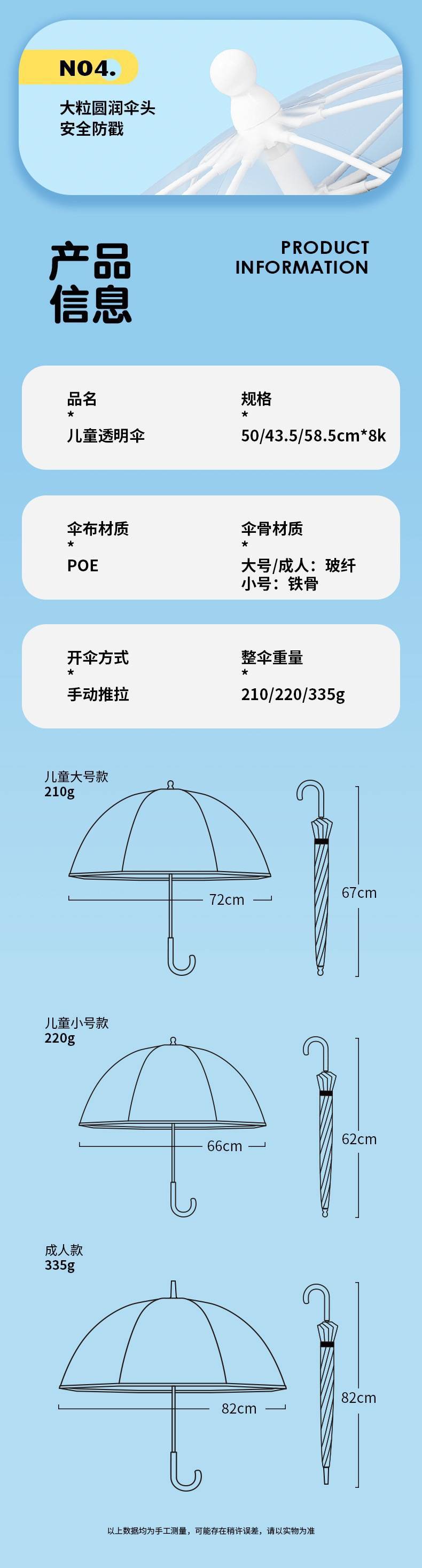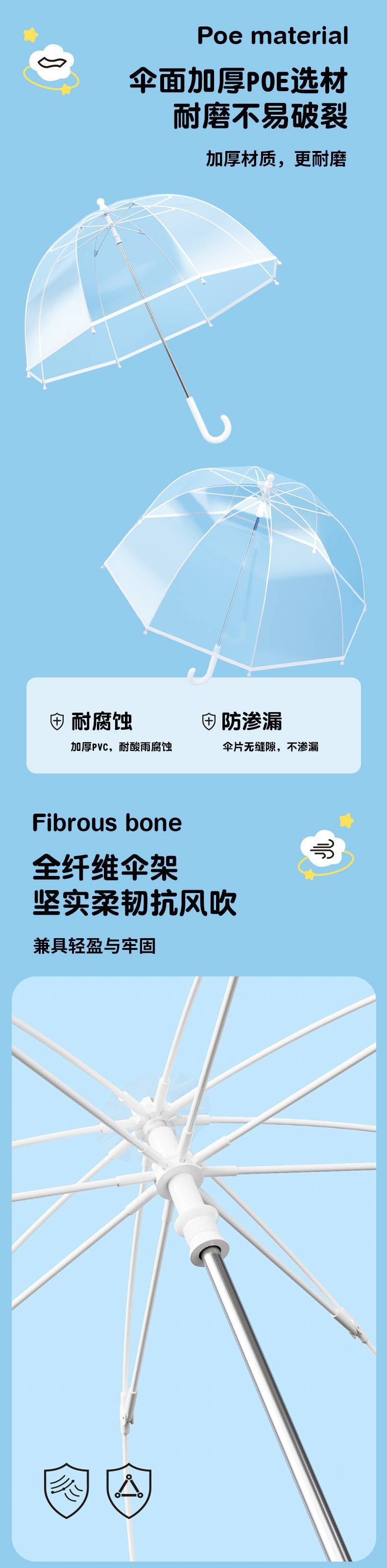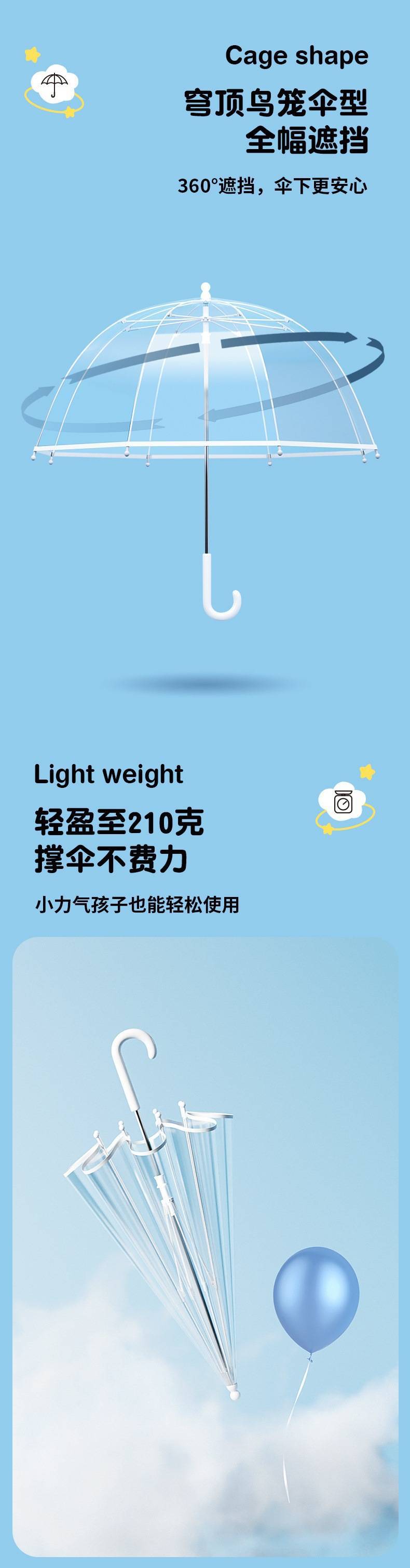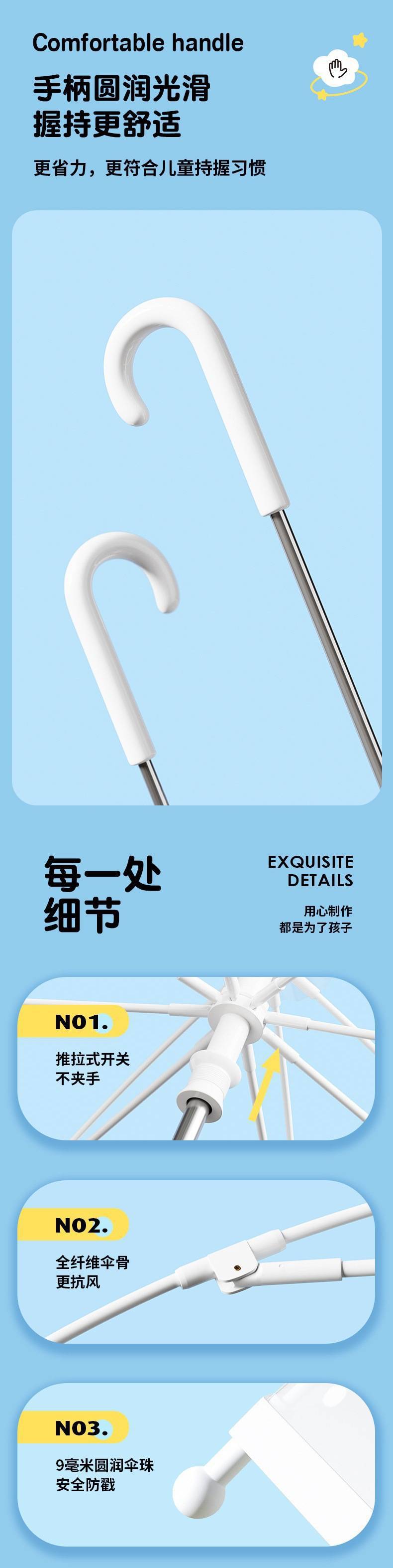 어린이 우산 초경량 투명 긴 손잡이 꼬집음 작은 신선한 스몰 사이즈 안전 남학생과 여학생 초등학생을위한 투명 우산