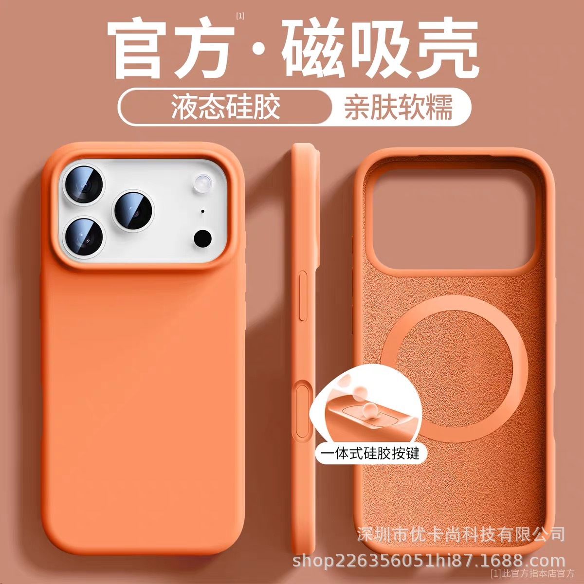 iPhone17promax 휴대폰 케이스에 적합 견고한 실리콘 자기 흡입 Apple 16 피부 친화적인 느낌의 모든 항목을 포함하는 보호 커버스토어 가기