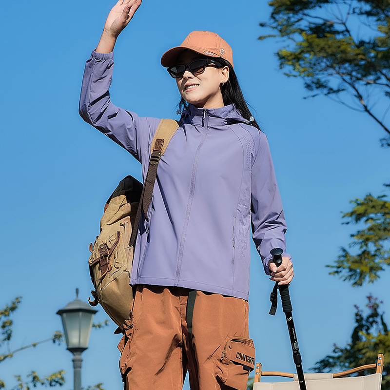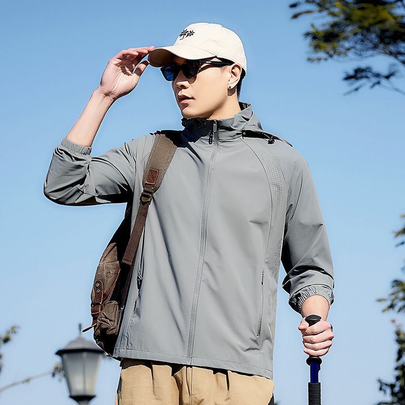 여름 후드 자외선 차단 의류, 패셔너블한 풀 컬러 고탄성 얇은 코트, 얼음 실크 자외선 차단 야외 낚시 의류, 등산 피트니스 의류