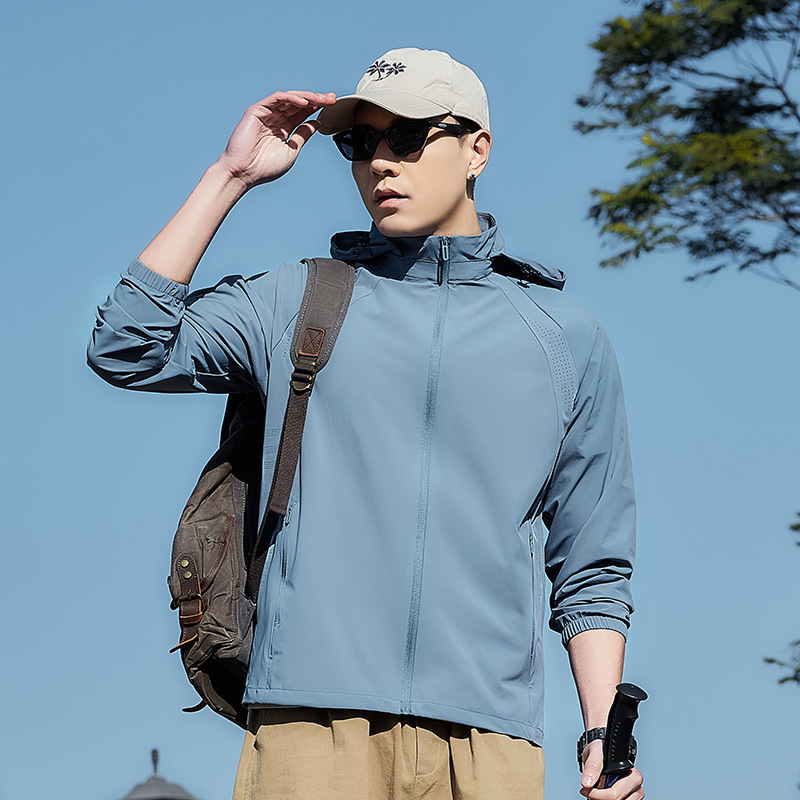 여름 후드 자외선 차단 의류, 패셔너블한 풀 컬러 고탄성 얇은 코트, 얼음 실크 자외선 차단 야외 낚시 의류, 등산 피트니스 의류스토어 가기