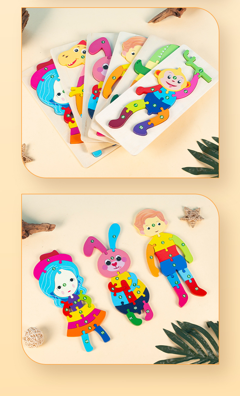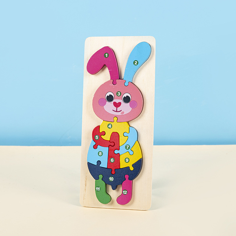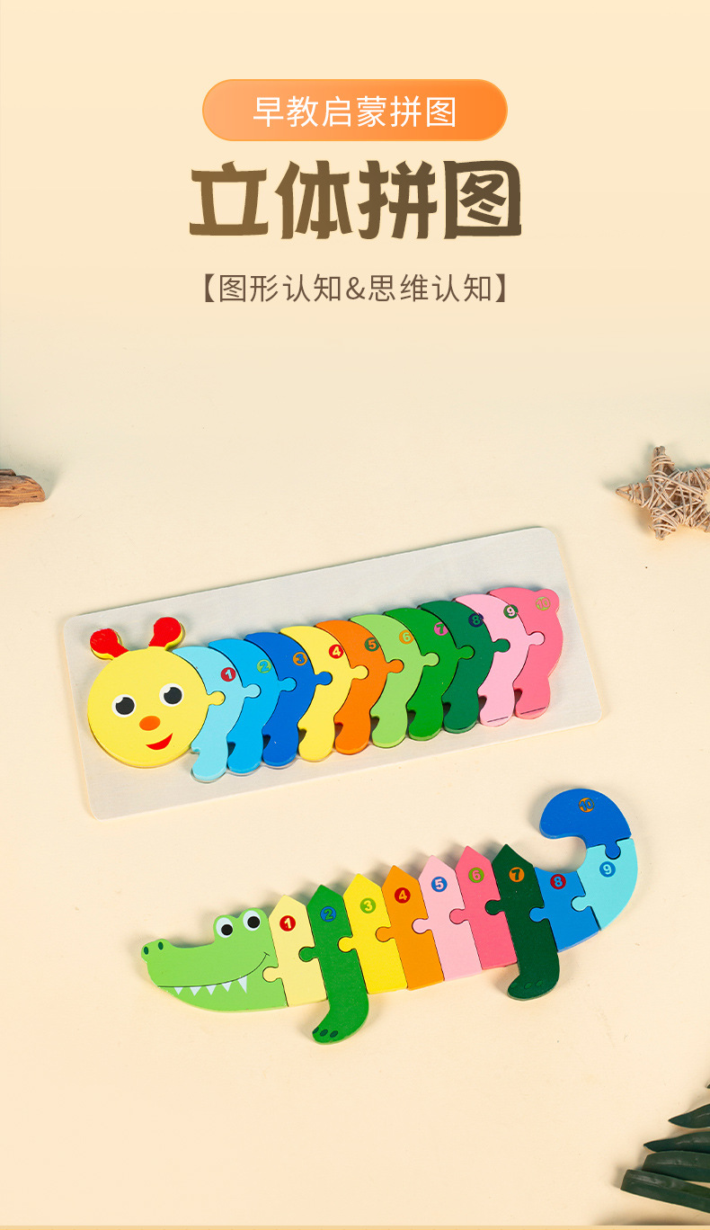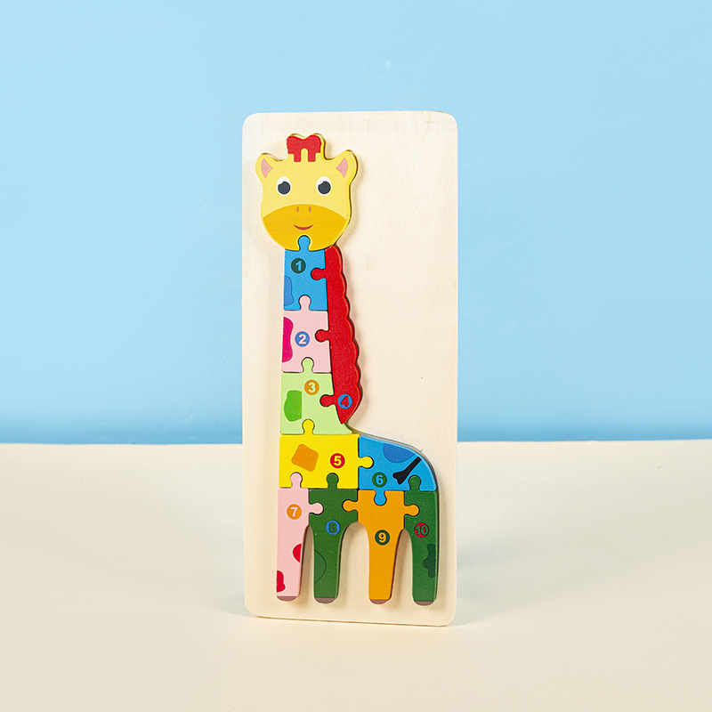 소년과 소녀를 위한 나무 3D 입체 조기 교육 장난감, 어린 아이들을 위한 대형 입문 동물 퍼즐 빌딩 블록 1-2세스토어 가기
