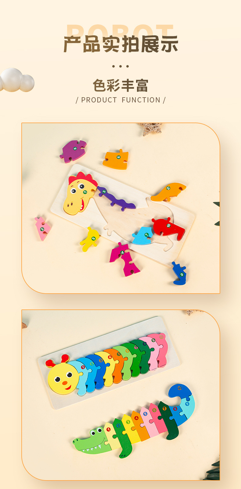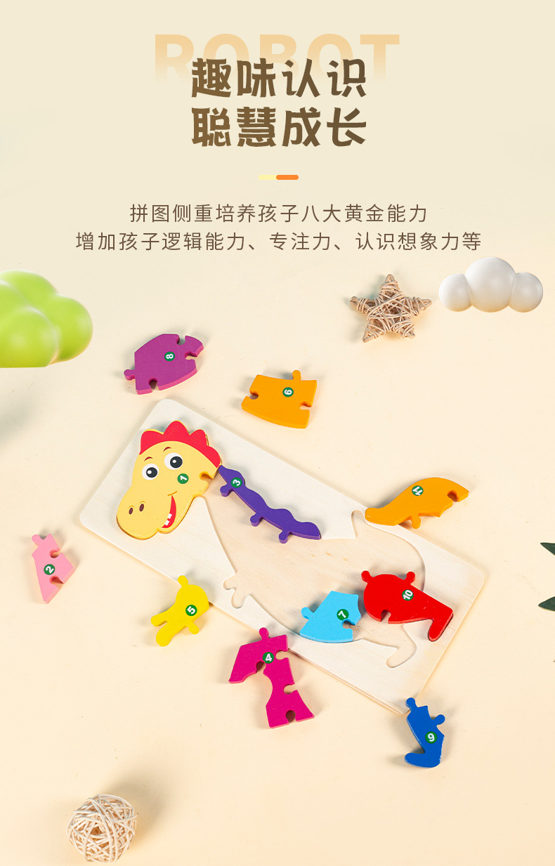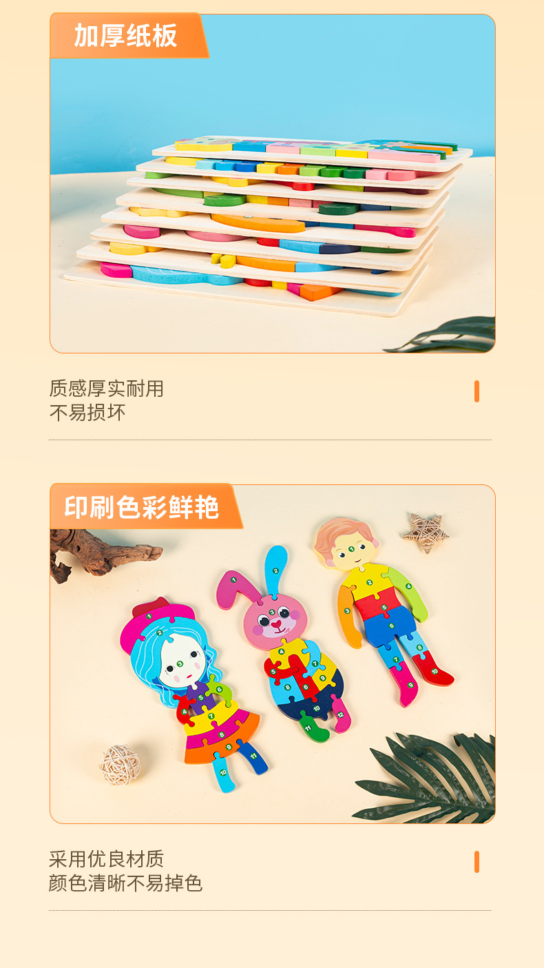 소년과 소녀를 위한 나무 3D 입체 조기 교육 장난감, 어린 아이들을 위한 대형 입문 동물 퍼즐 빌딩 블록 1-2세스토어 가기