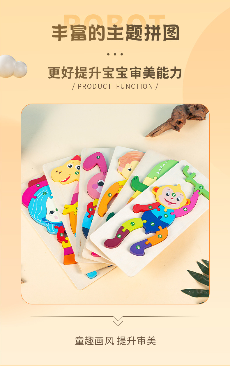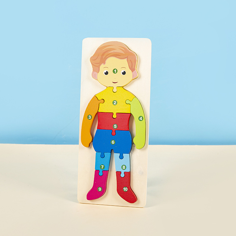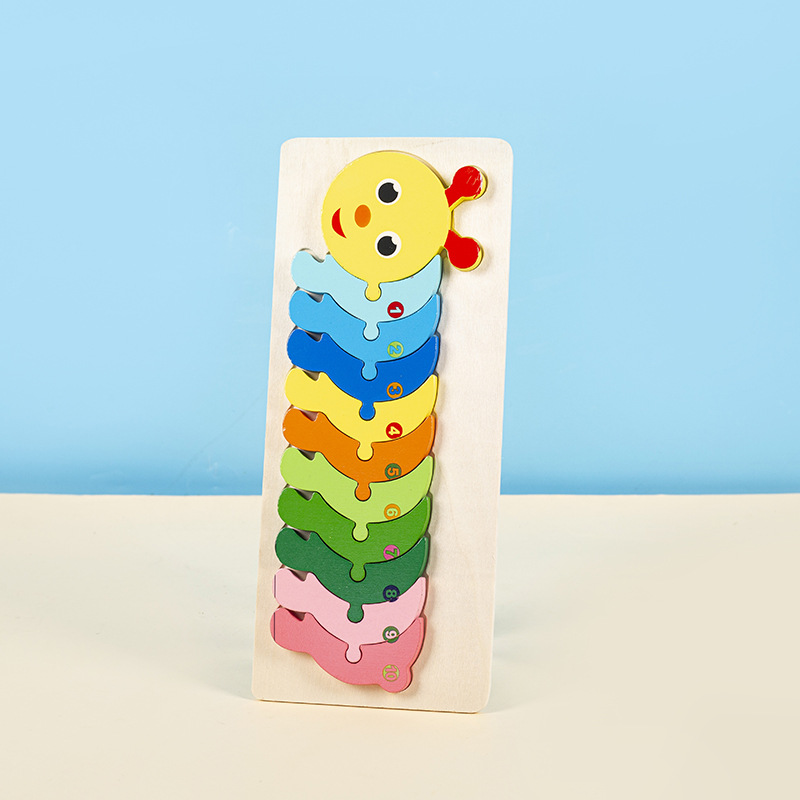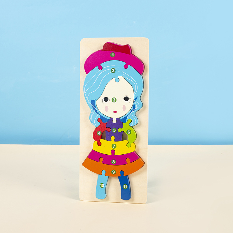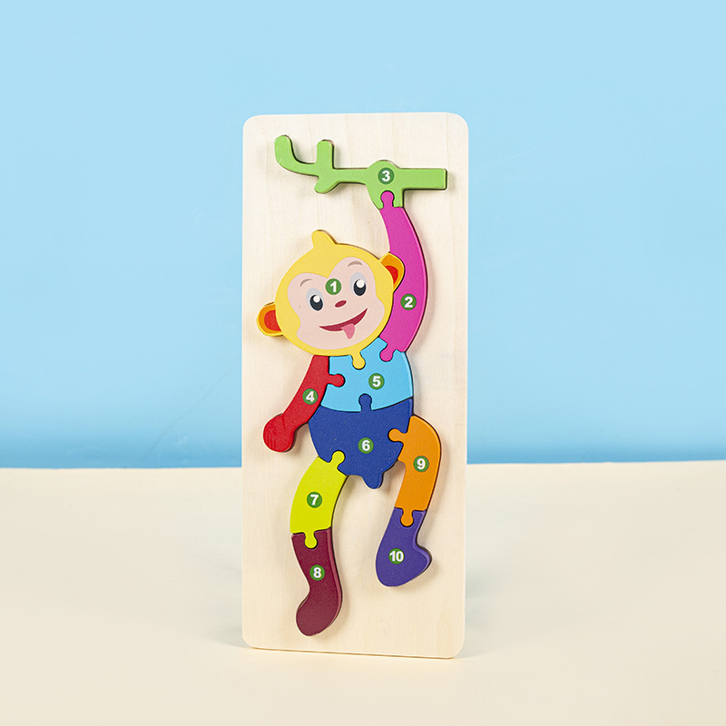 소년과 소녀를 위한 나무 3D 입체 조기 교육 장난감, 어린 아이들을 위한 대형 입문 동물 퍼즐 빌딩 블록 1-2세