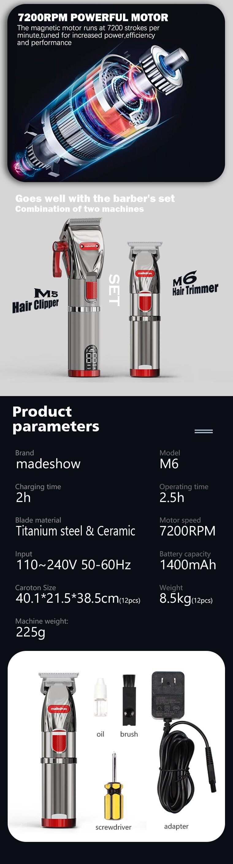 아코메 M6 이발소 도구 스타일링 DIY 헤어컷 티타늄 합금 날 이발기 전기 이발기 충전식스토어 가기