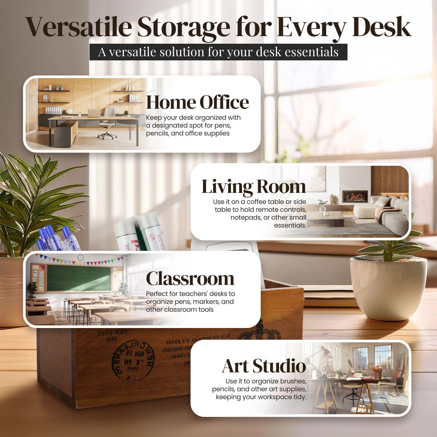 나무 책상 펜 홀더 장식품 학교 용품 보관 상자 다기능 빈티지 메이크업 브러쉬 버킷 펜 항아리 책상에스토어 가기