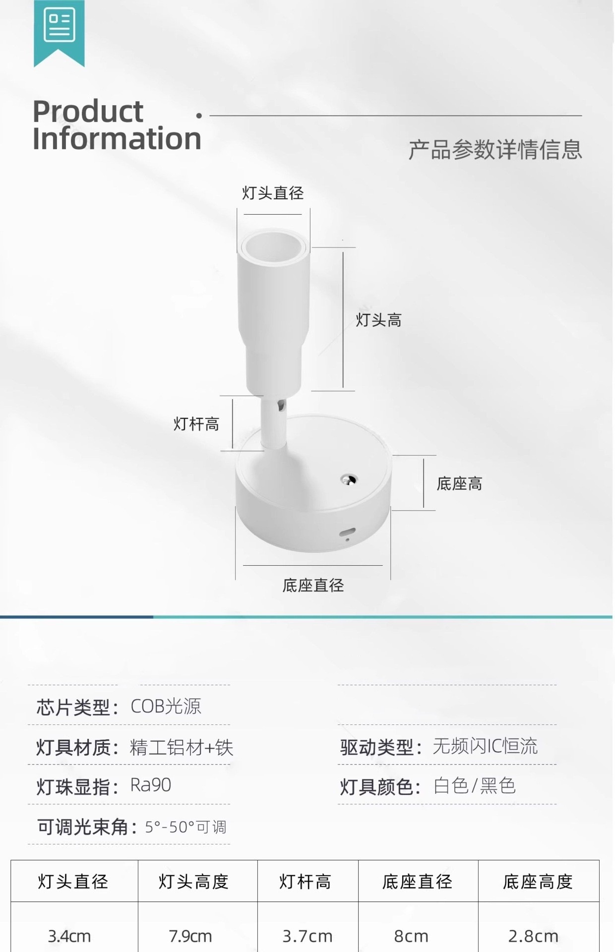 자기 흡수 배선이없는 천공이없는 스포트라이트 거실 현관 침대 옆 8 작은 각도 충전 조정 가능한 초점 벽 램프