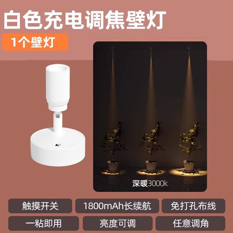 자기 흡수 배선이없는 천공이없는 스포트라이트 거실 현관 침대 옆 8 작은 각도 충전 조정 가능한 초점 벽 램프스토어 가기