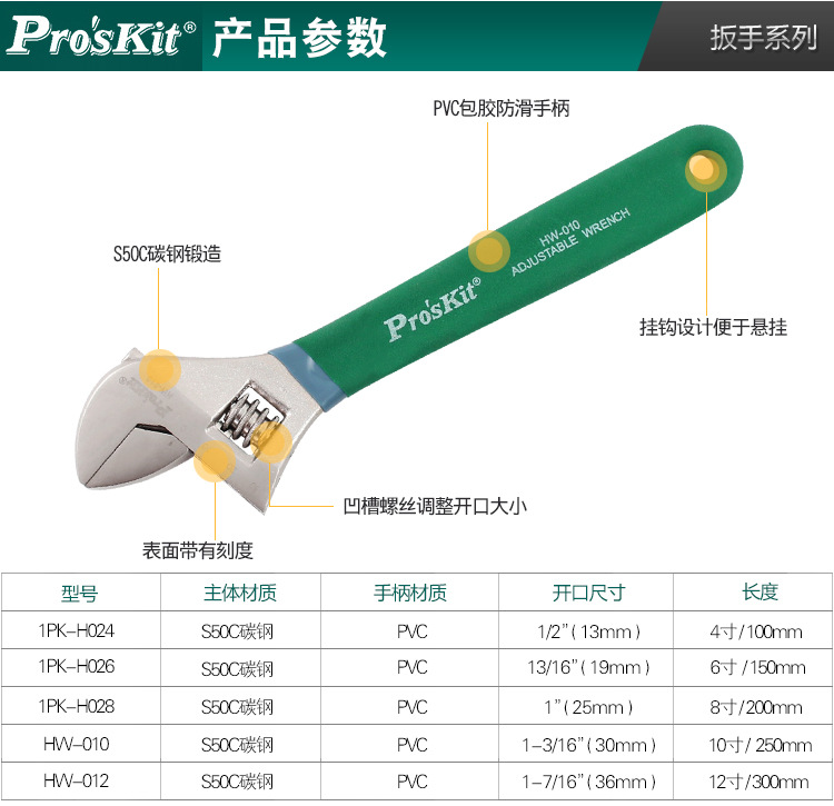 대만 Baogong 1PK-H026 범용 조절 렌치 4인치 6인치 8인치 10inch 12inch 조절 렌치