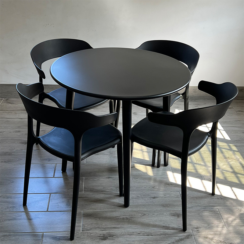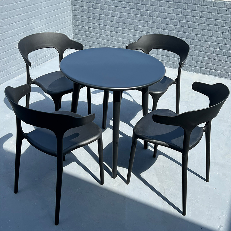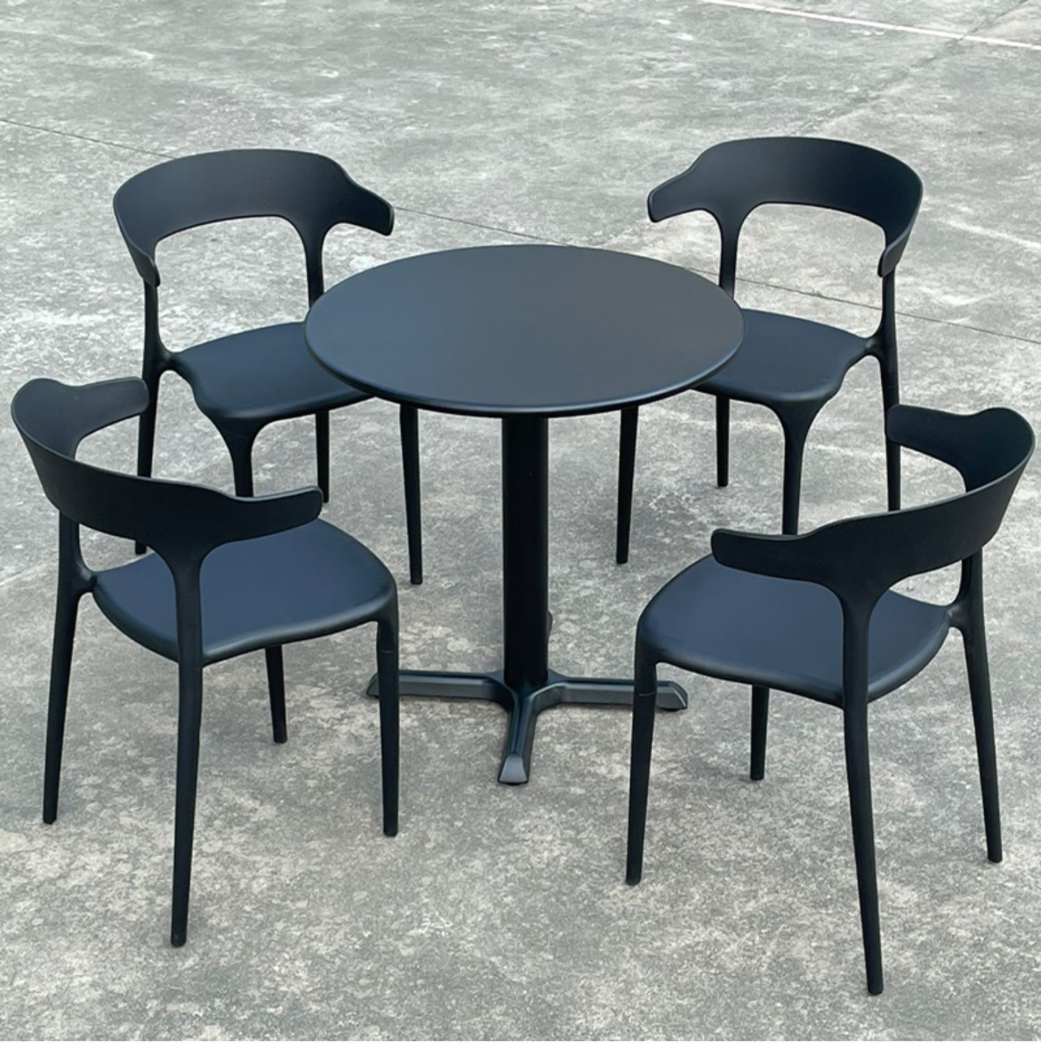 • 검은 탄소강 두꺼운 80cm 자외선 차단 및 방습 강철 탄소 원형 테이블 + 의자 4개