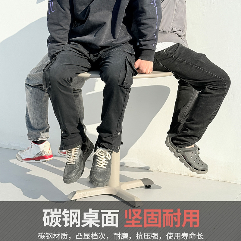야외 레저 협상 야외 발코니 작은 원형 테이블과 의자 조합 인터넷 연예인 밀크티 가게 야외 심플한 식탁 인기 판매스토어 가기