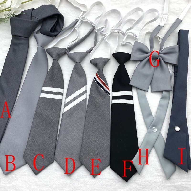 넥타이, 컬리지 스타일, 여아용 액세서리, 짧은 회색 줄무늬, 여성용 무료 유니폼, 플리츠 스커트, 리본매듭, 크로스 나비넥타이