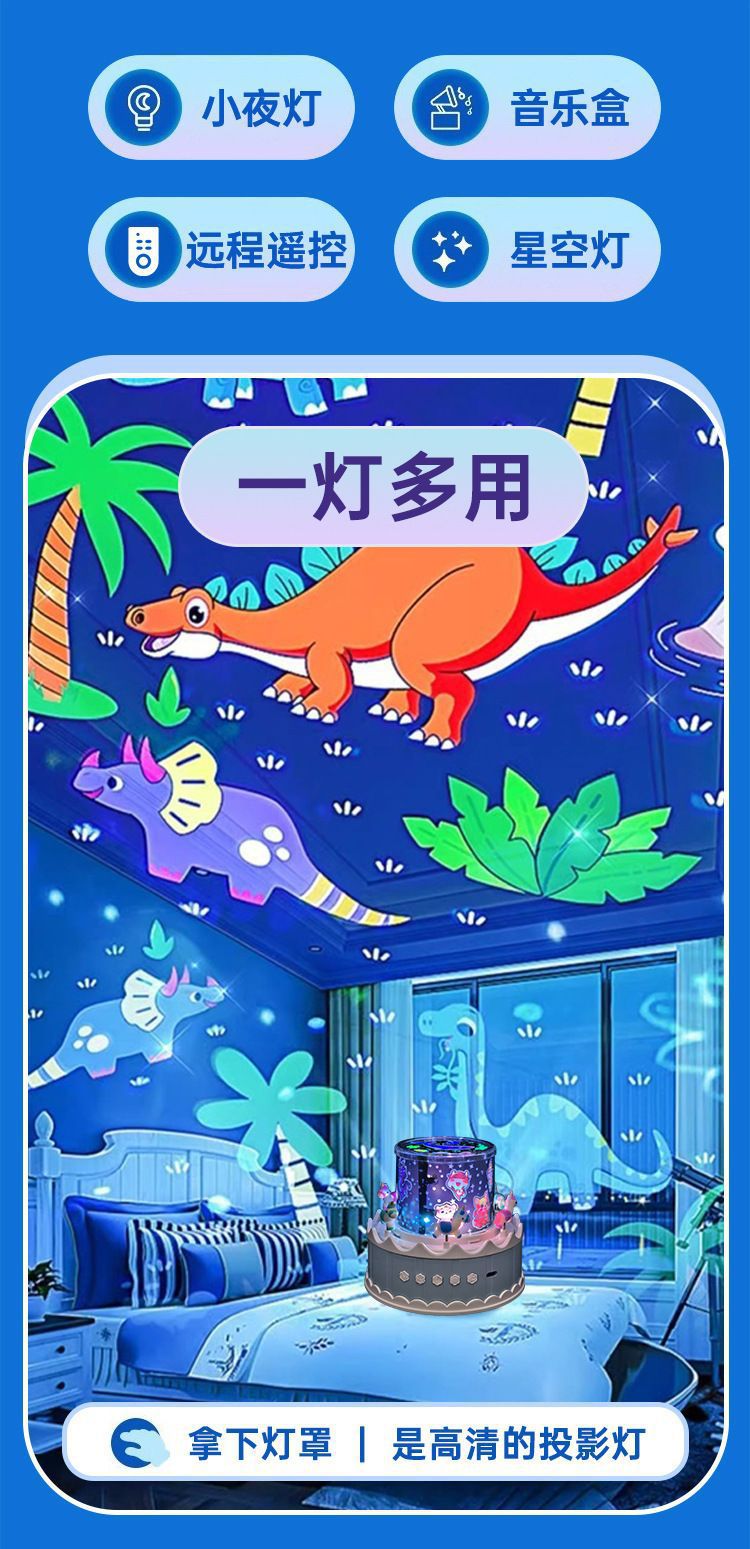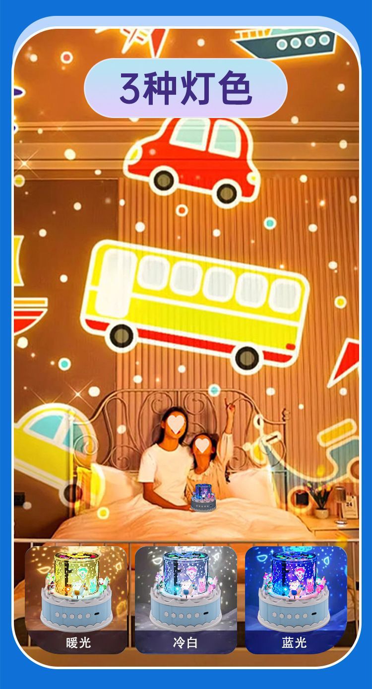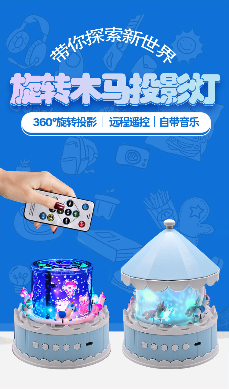 크로스보더 회전목마 프로젝션 램프 USB 음악 오르골 분위기 조명 어린이 별빛 램프 PVC 장난감 야간등스토어 가기
