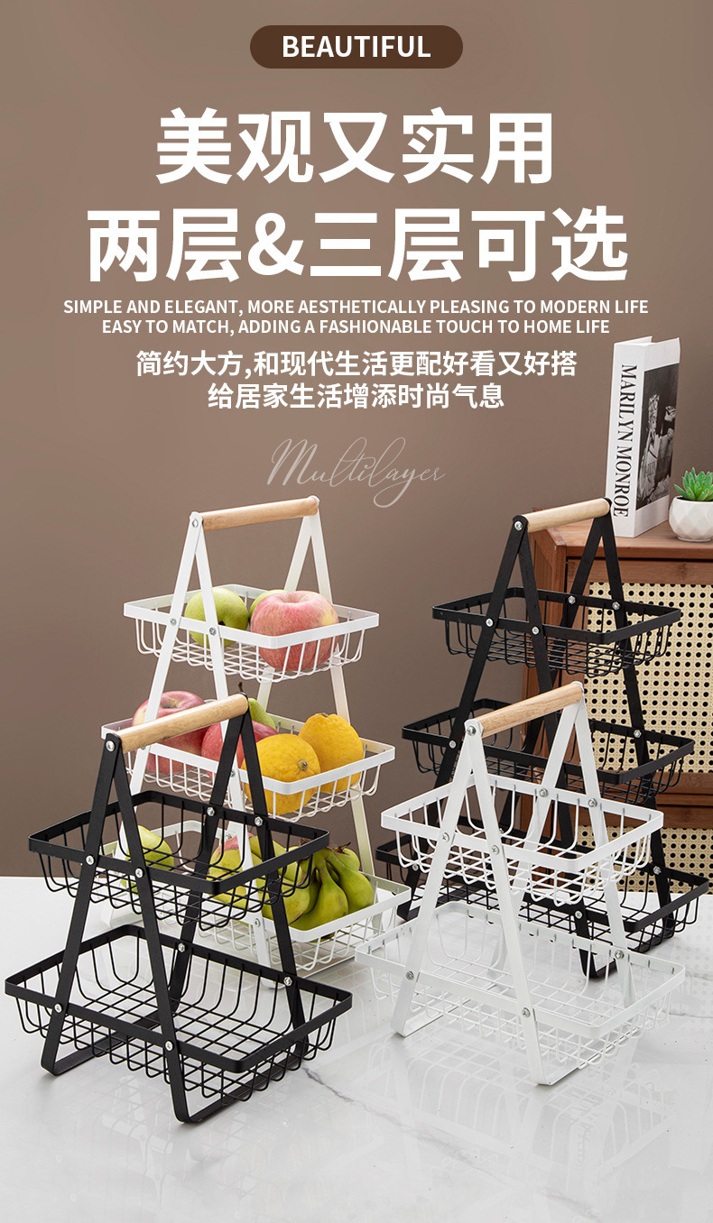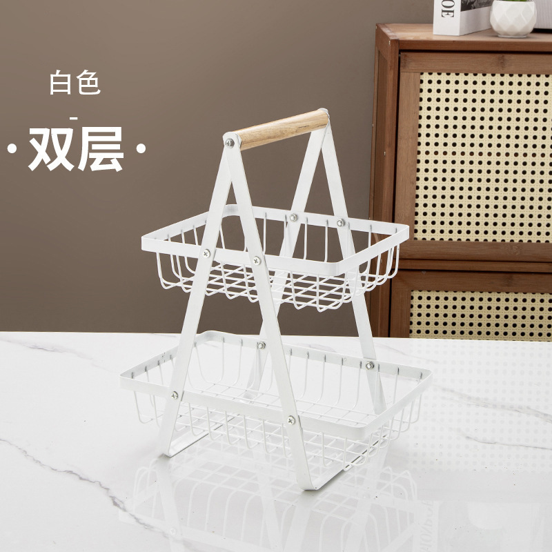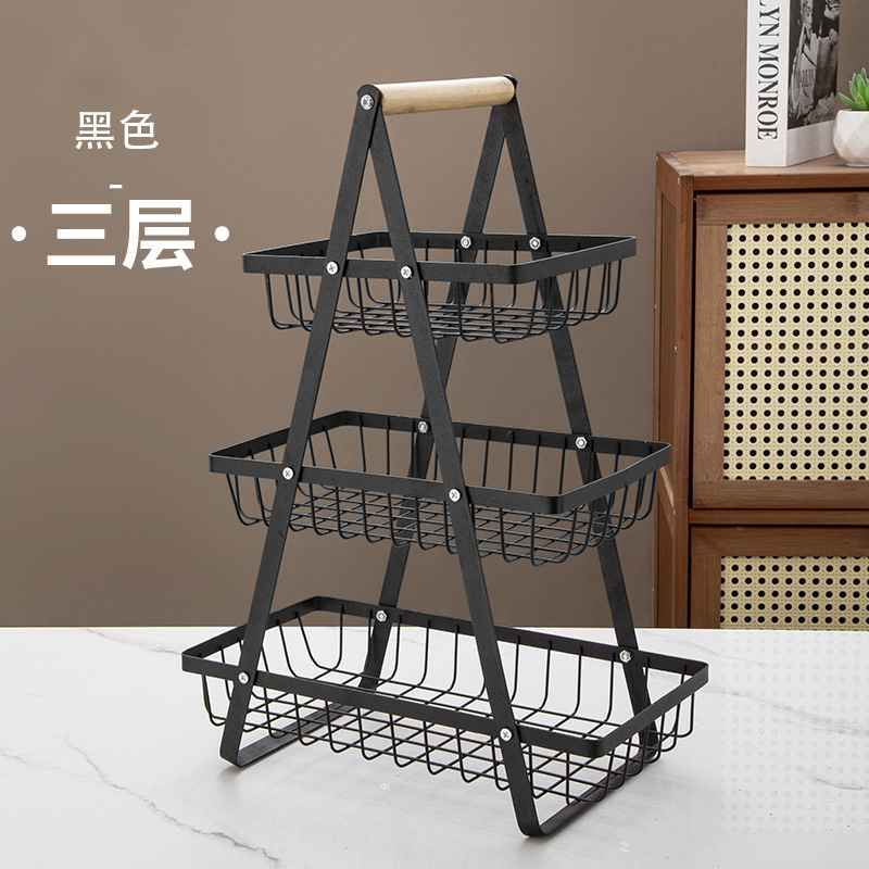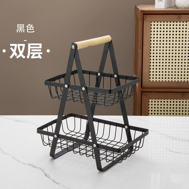 국경 새로운 나무 손 바구니 단철 다기능 과일 바구니 주방 다층 스낵 보관 랙 도매