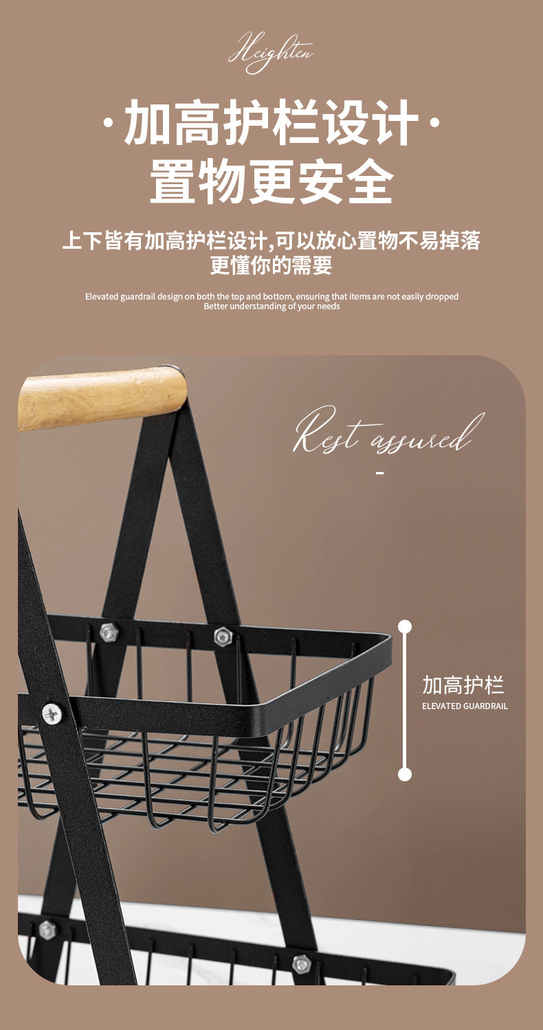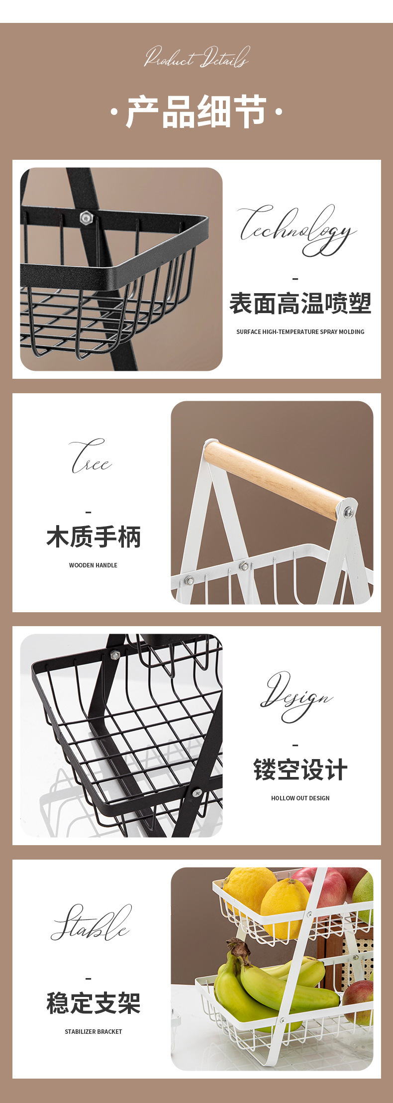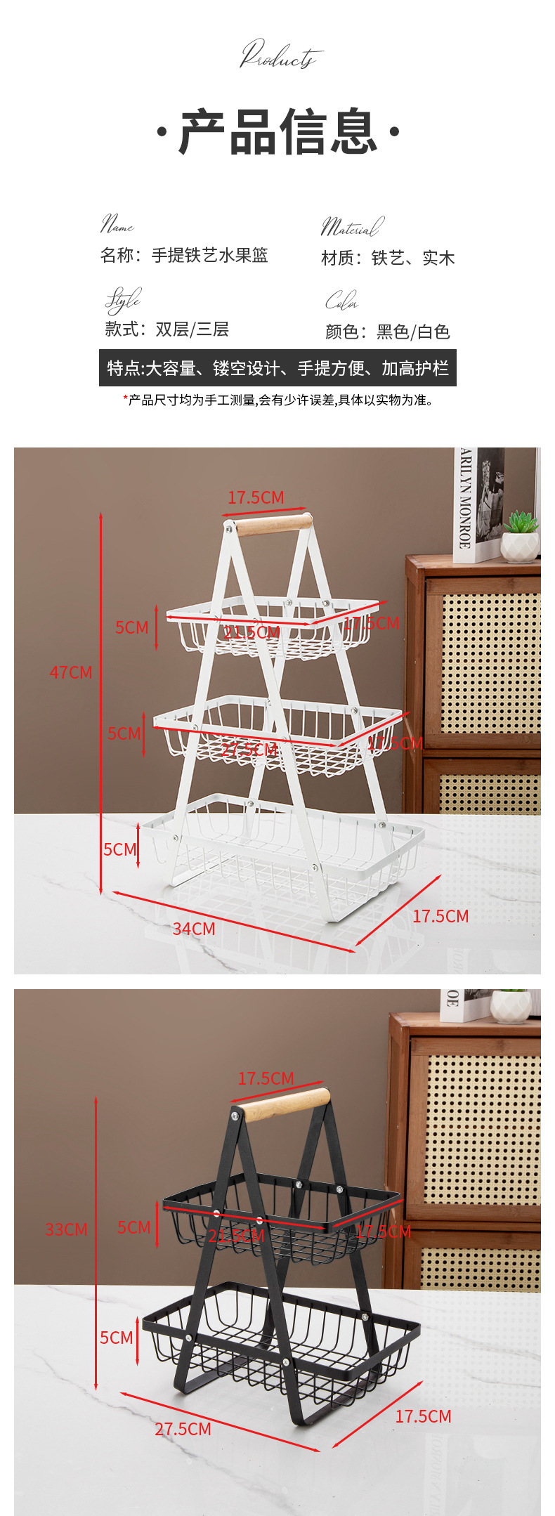 국경 새로운 나무 손 바구니 단철 다기능 과일 바구니 주방 다층 스낵 보관 랙 도매