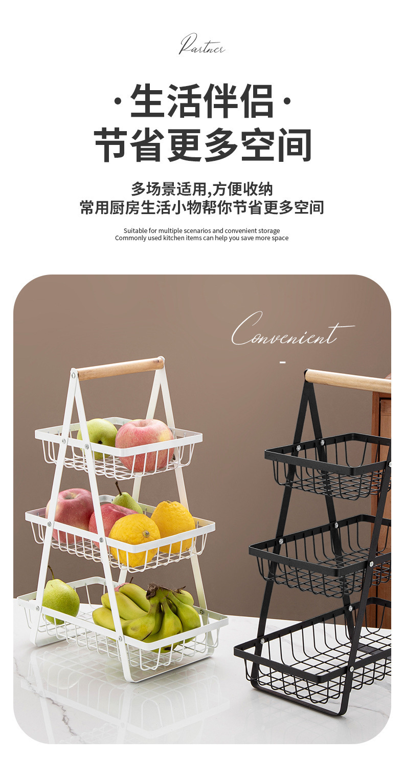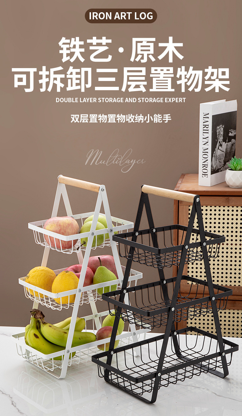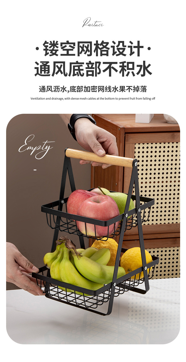국경 새로운 나무 손 바구니 단철 다기능 과일 바구니 주방 다층 스낵 보관 랙 도매스토어 가기