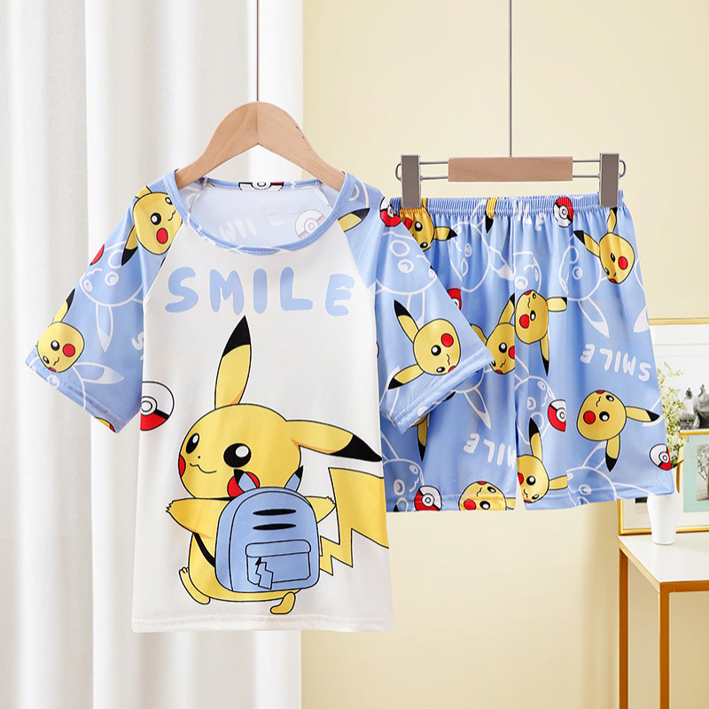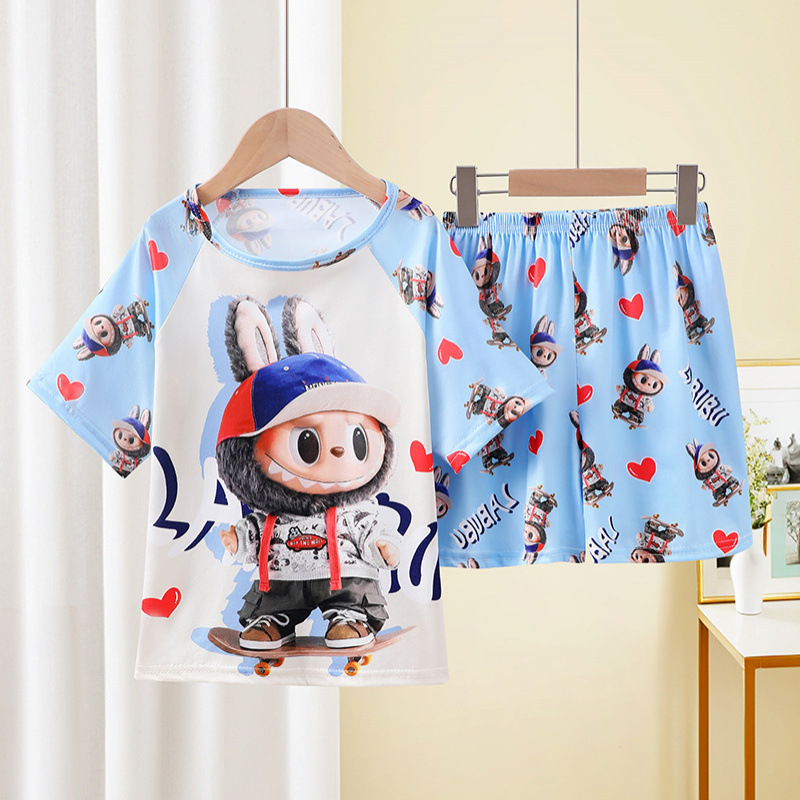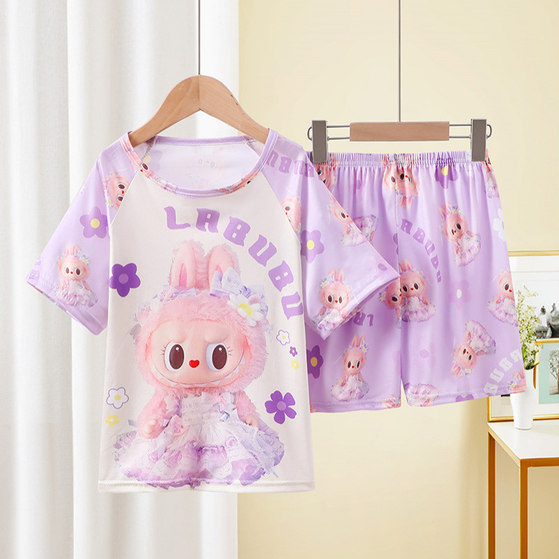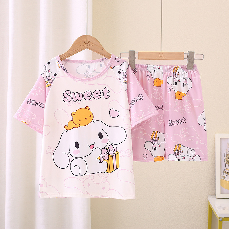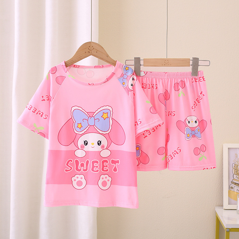 동남아동 잠옷, 여름 여아 반팔 양복, 얇고 귀여운, 중대형 어린이가 집 밖에서도 입을 수 있는 옷스토어 가기