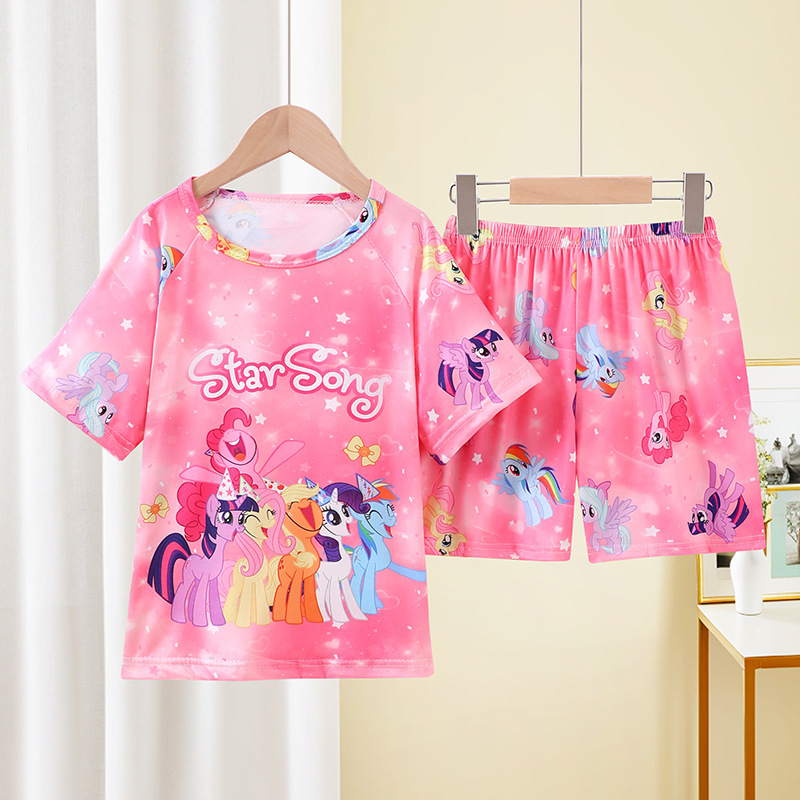 동남아동 잠옷, 여름 여아 반팔 양복, 얇고 귀여운, 중대형 어린이가 집 밖에서도 입을 수 있는 옷