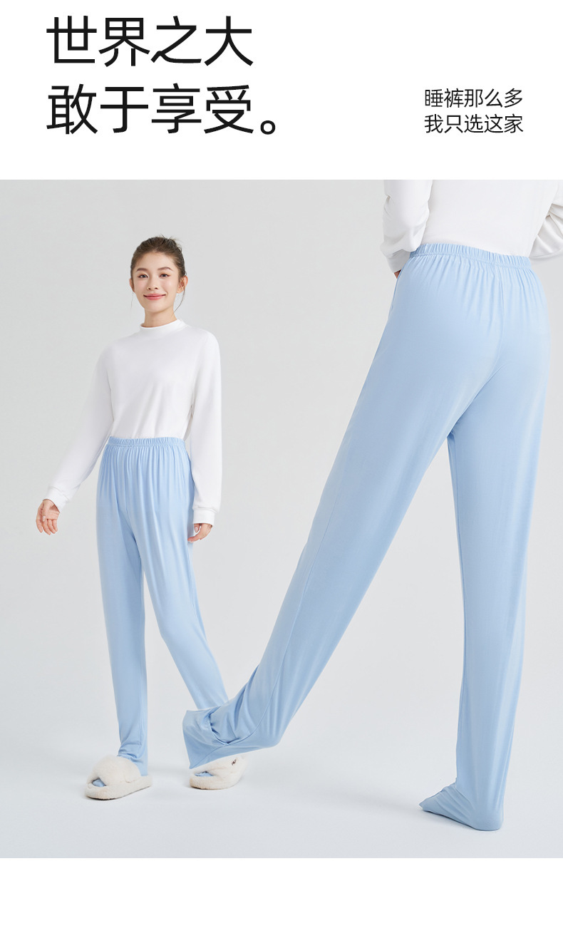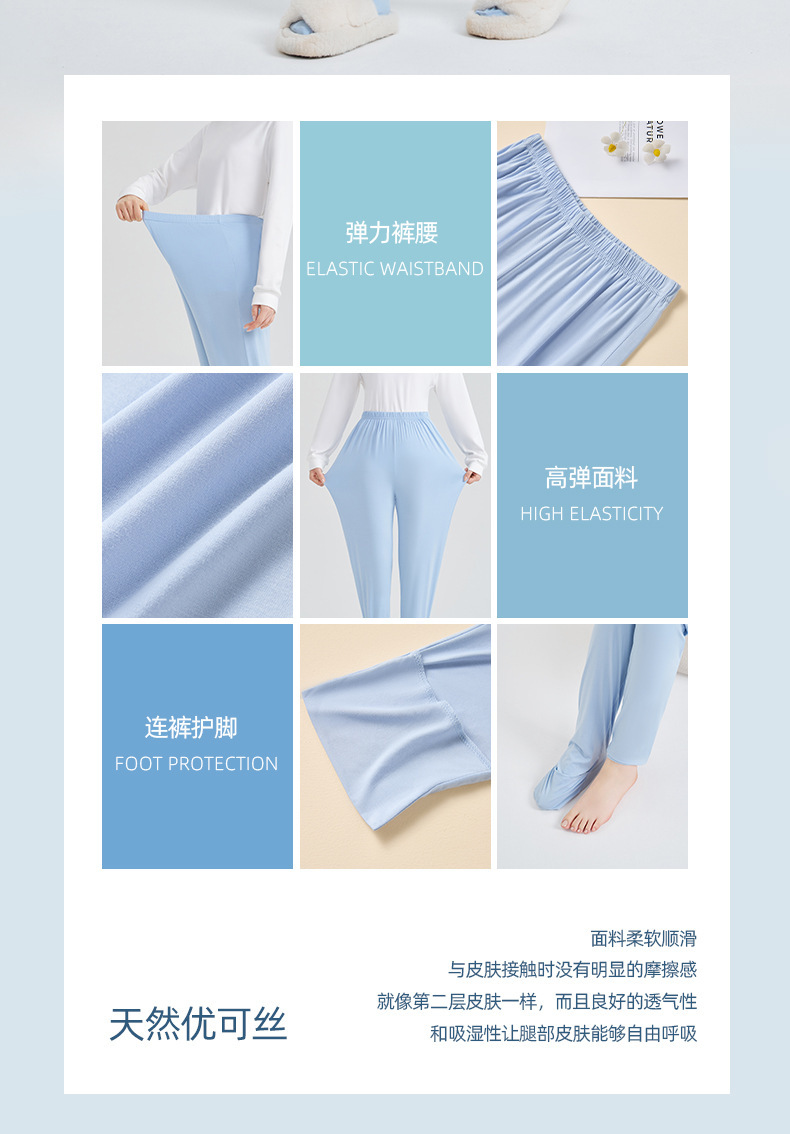 발 보호 잠옷 순면 산후복 양말이 있는 잠옷 가을 겨울 방한 여성 성인 발이 달린 일체형 홈웨어 긴바지스토어 가기