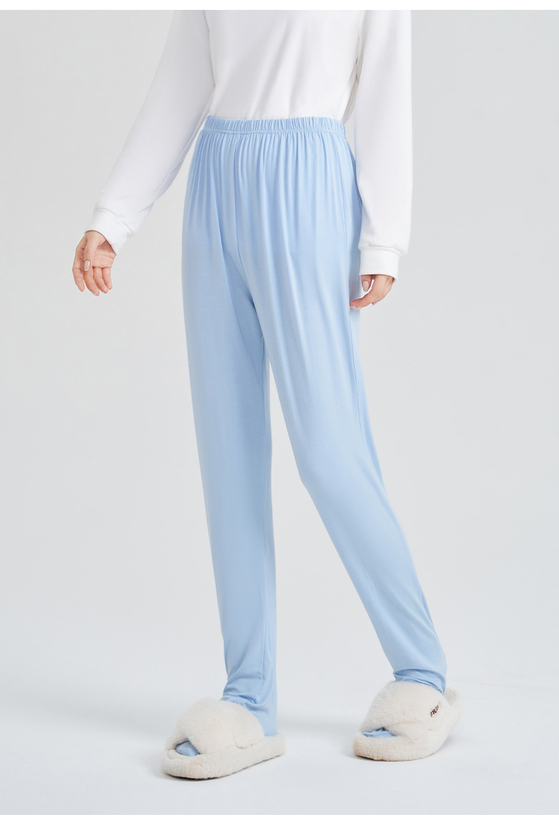발 보호 잠옷 순면 산후복 양말이 있는 잠옷 가을 겨울 방한 여성 성인 발이 달린 일체형 홈웨어 긴바지