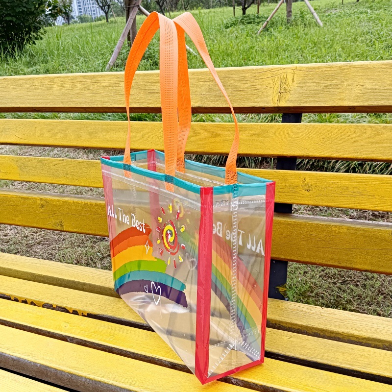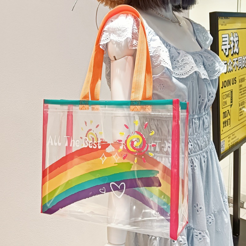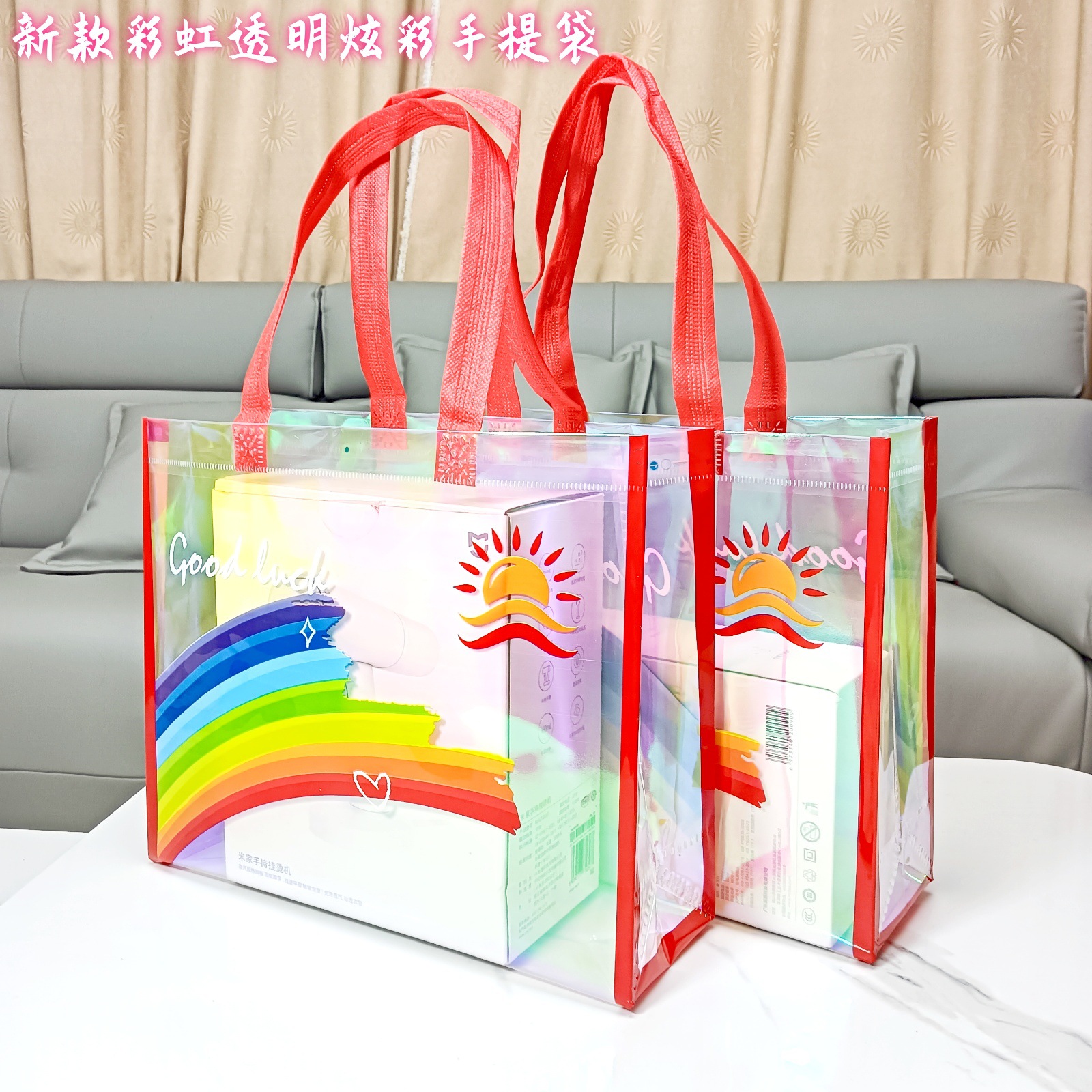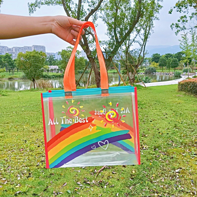 스팟 레인보우 PVC 투명 핸드백 의류 여성 매장 쇼핑백 기념품 DIY 유치원 휴일 선물 가방
