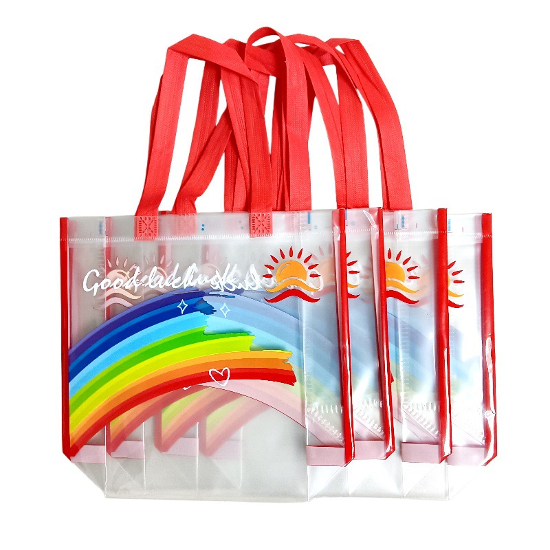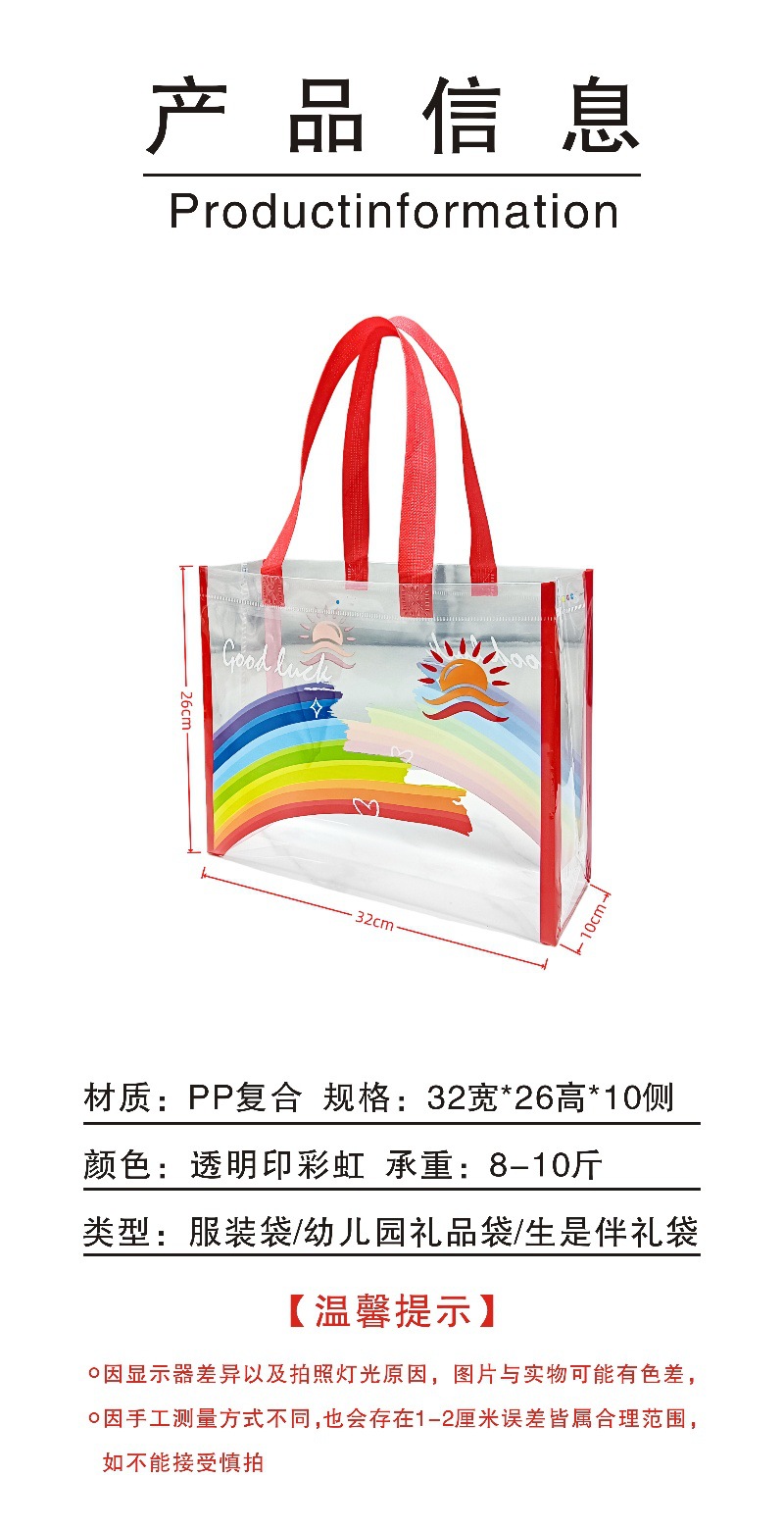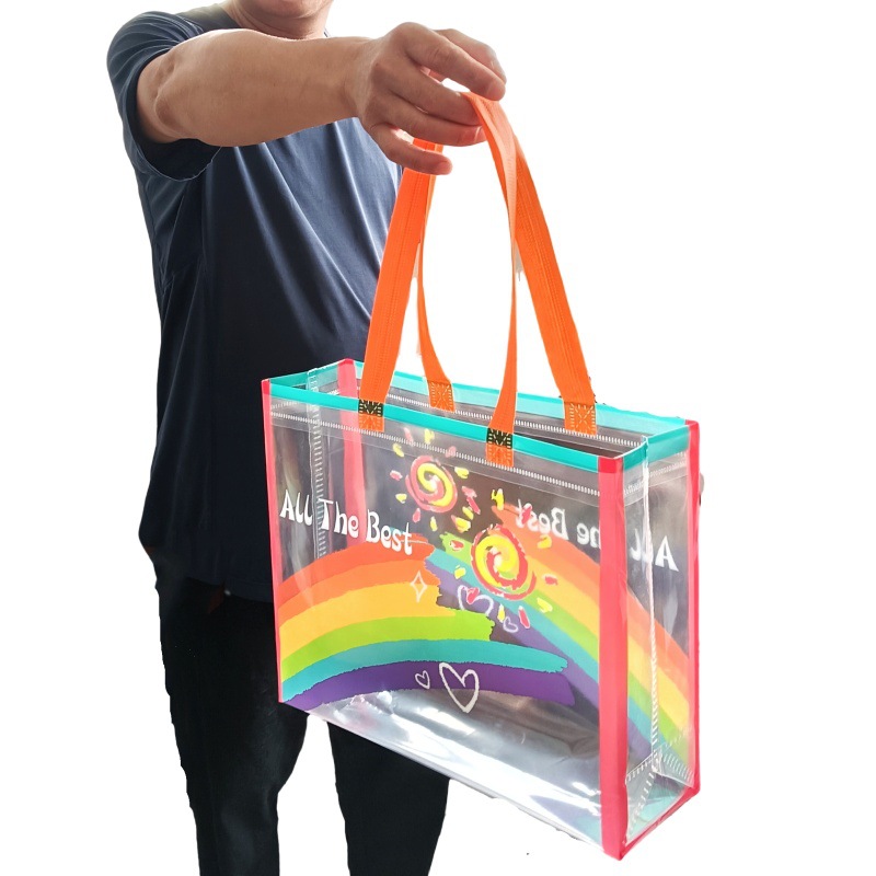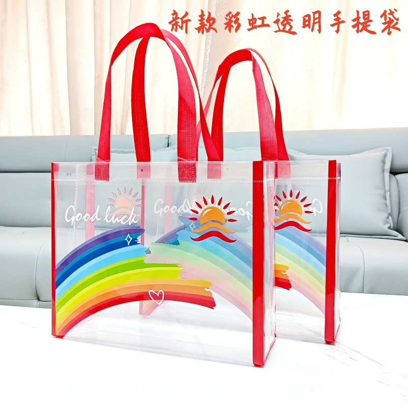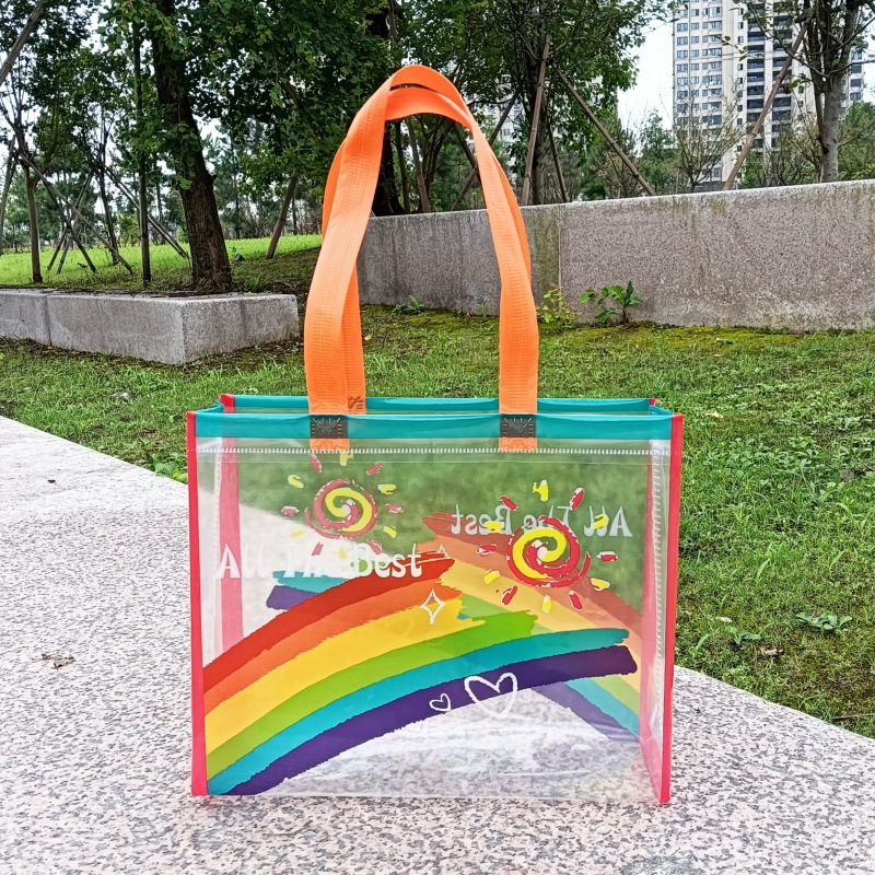 스팟 레인보우 PVC 투명 핸드백 의류 여성 매장 쇼핑백 기념품 DIY 유치원 휴일 선물 가방