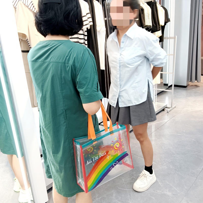 스팟 레인보우 PVC 투명 핸드백 의류 여성 매장 쇼핑백 기념품 DIY 유치원 휴일 선물 가방스토어 가기