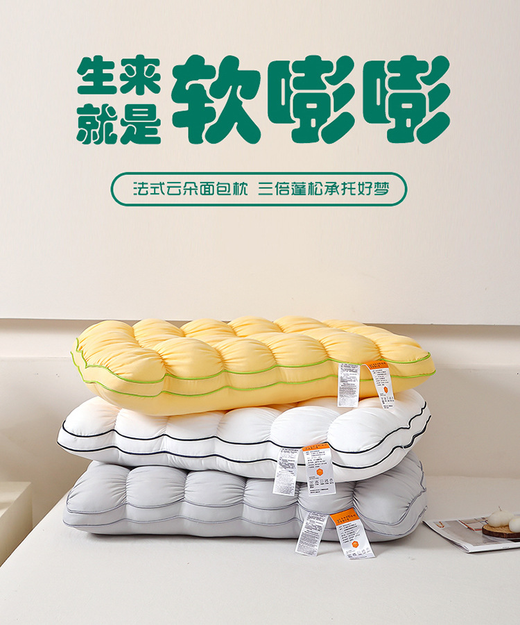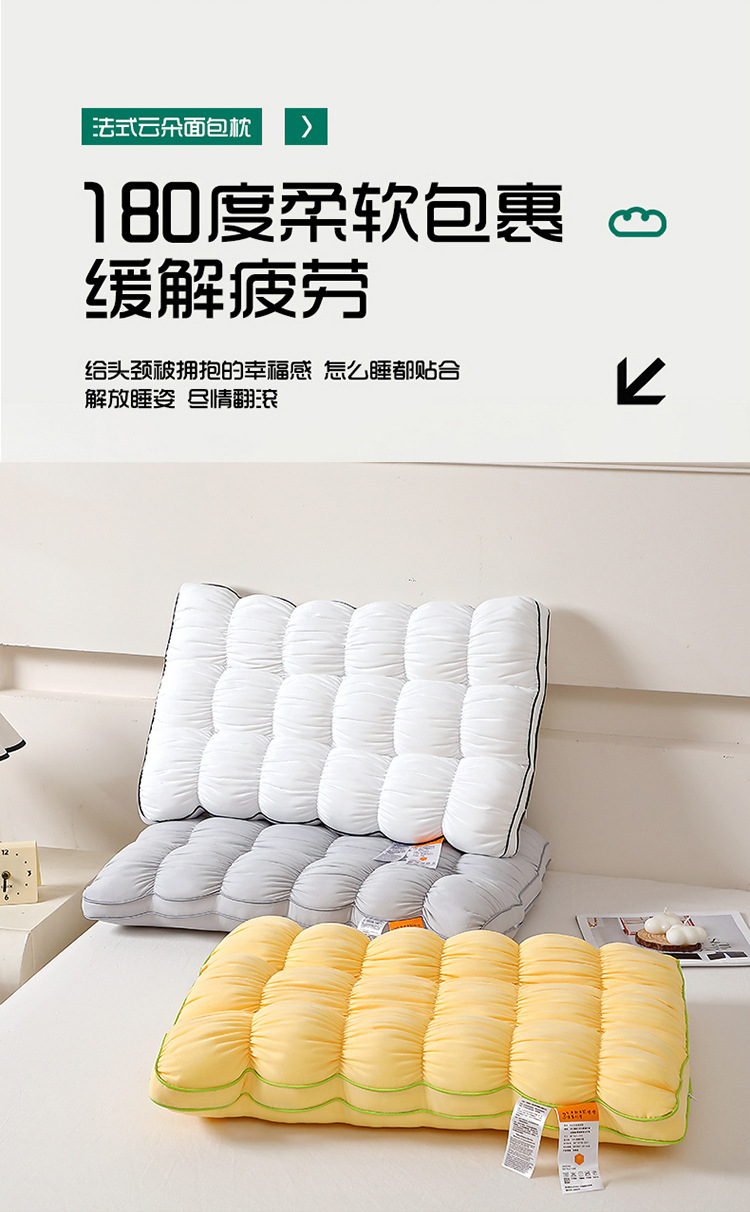 프랑스 스타일 구름 빵 베개 성인 호텔 소프트 베개 코어 기계 세탁기 높은 탄성 깃털 벨벳 베개 코어 공장 연기 머리스토어 가기