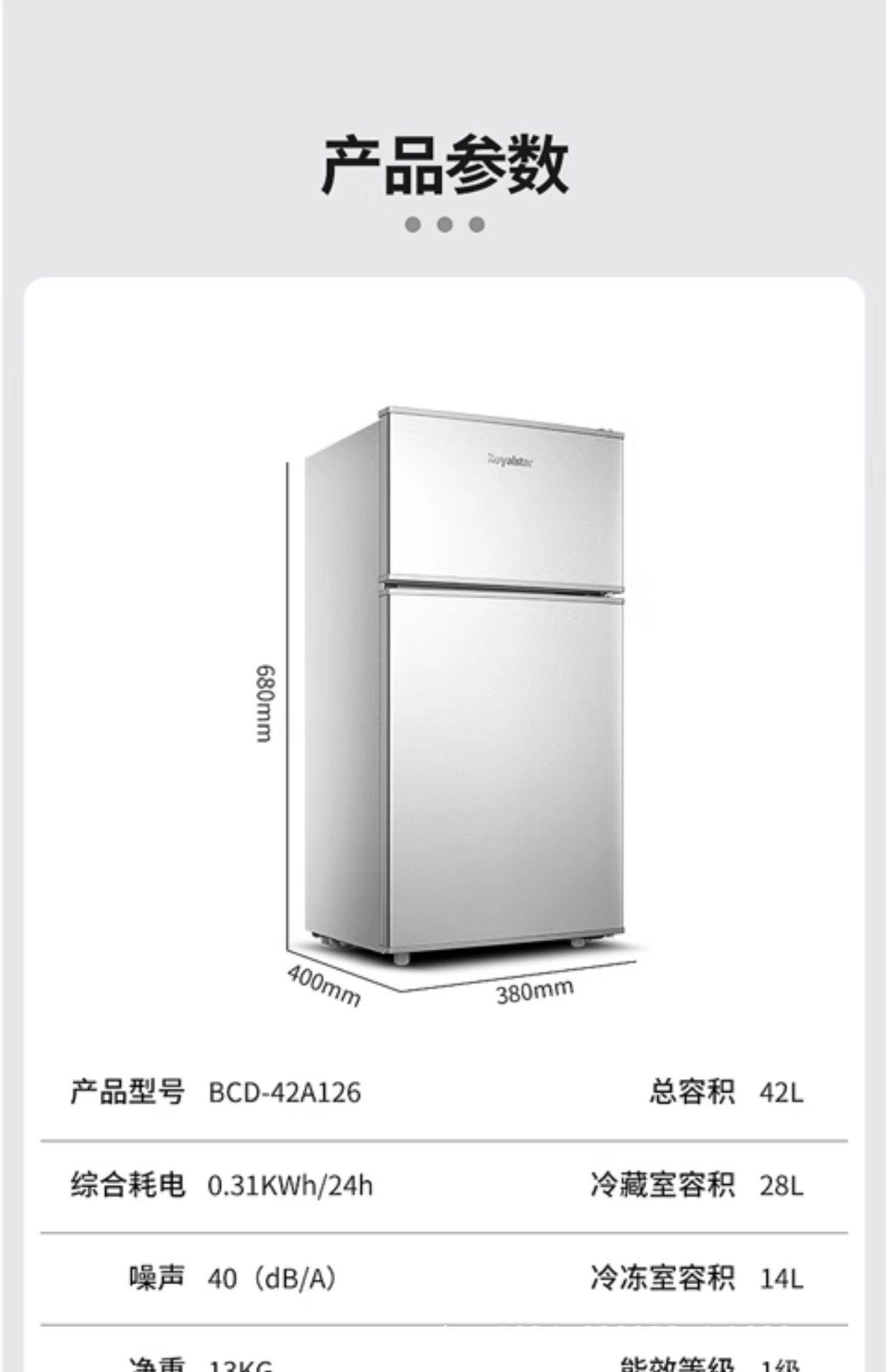 Rongshida [27-132 리터] 소형 기숙사 렌탈 룸 냉장 미니 더블 도어 냉장고 레벨 I