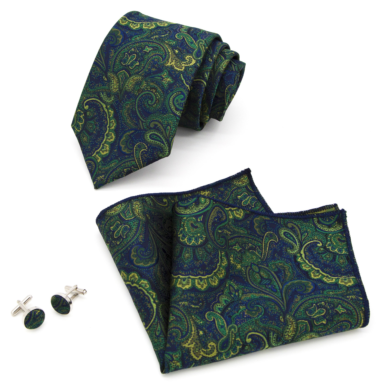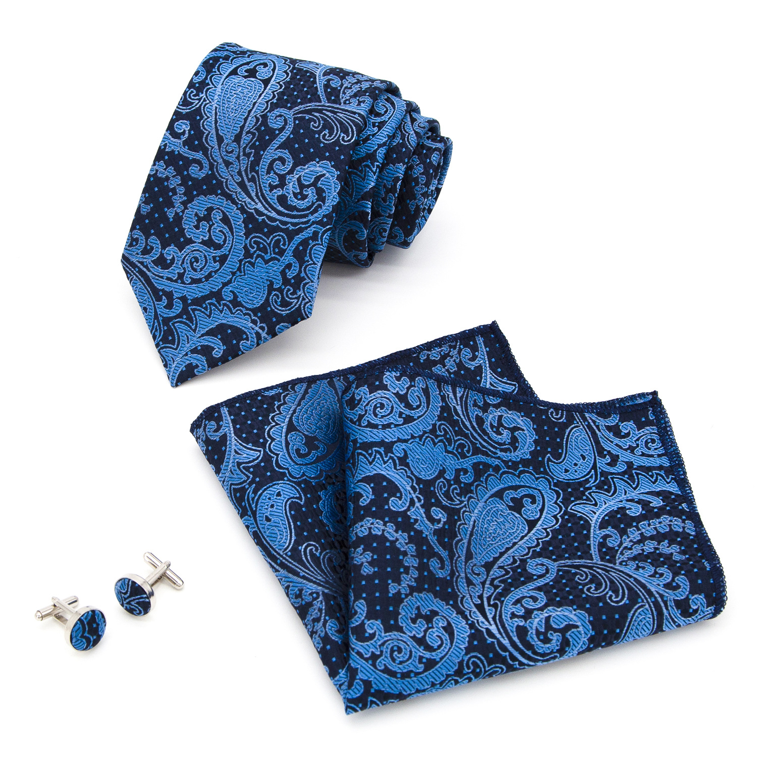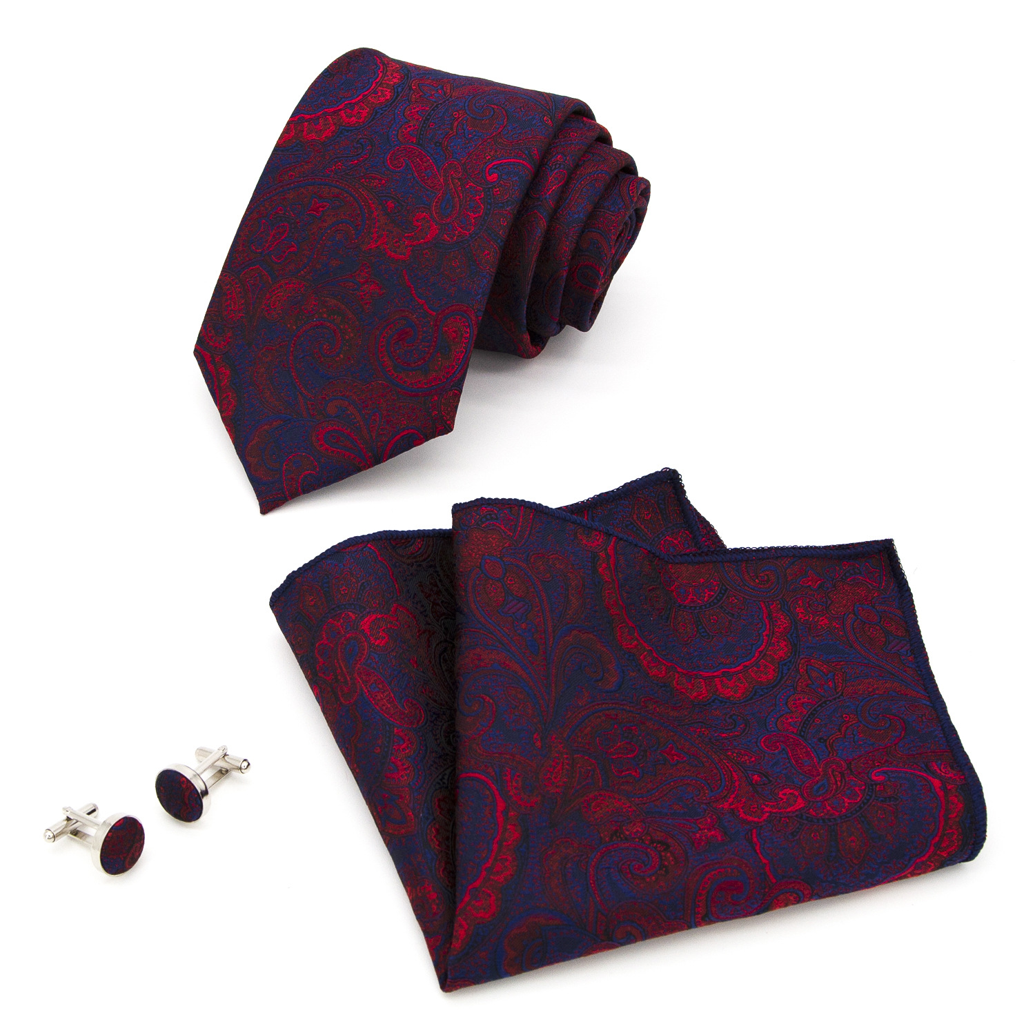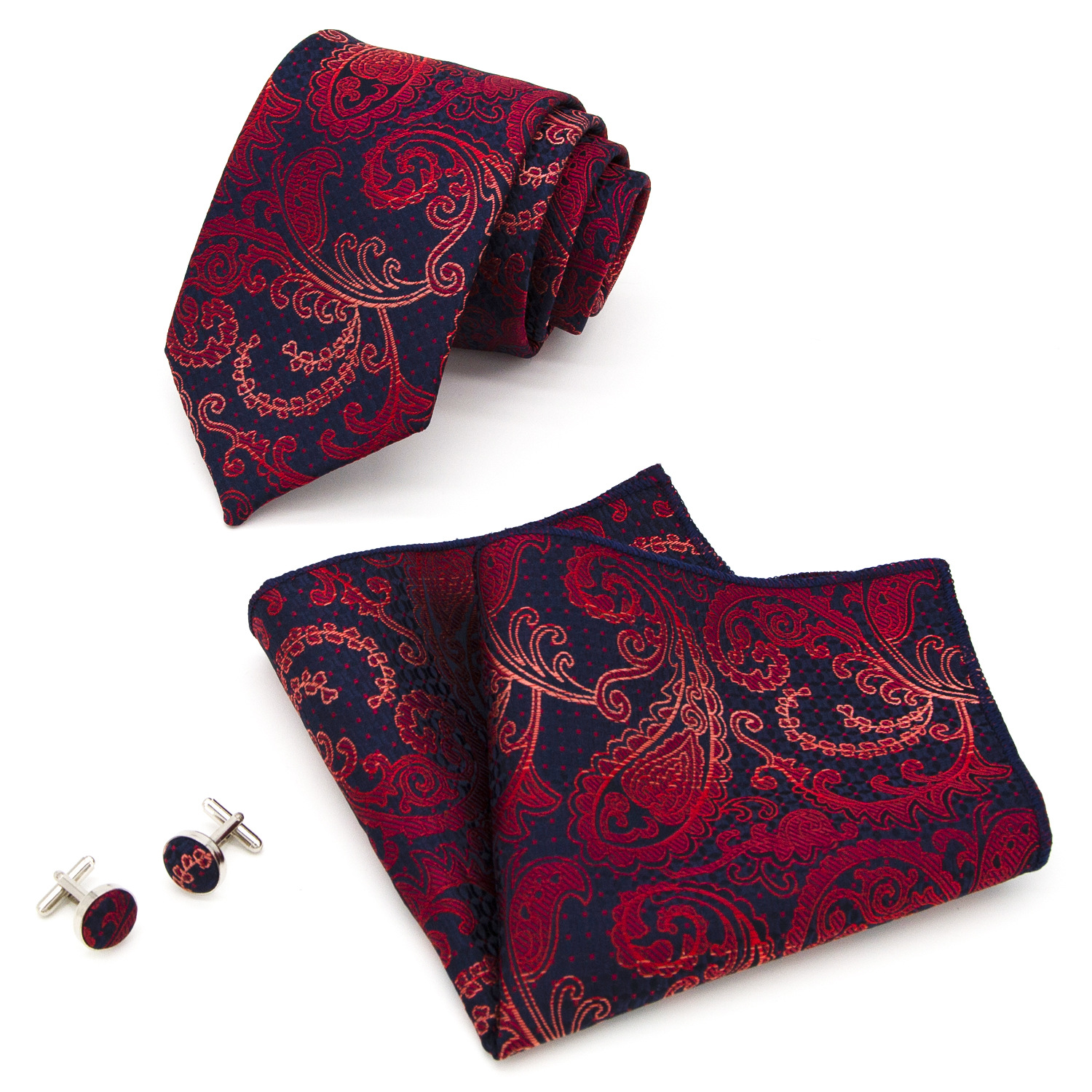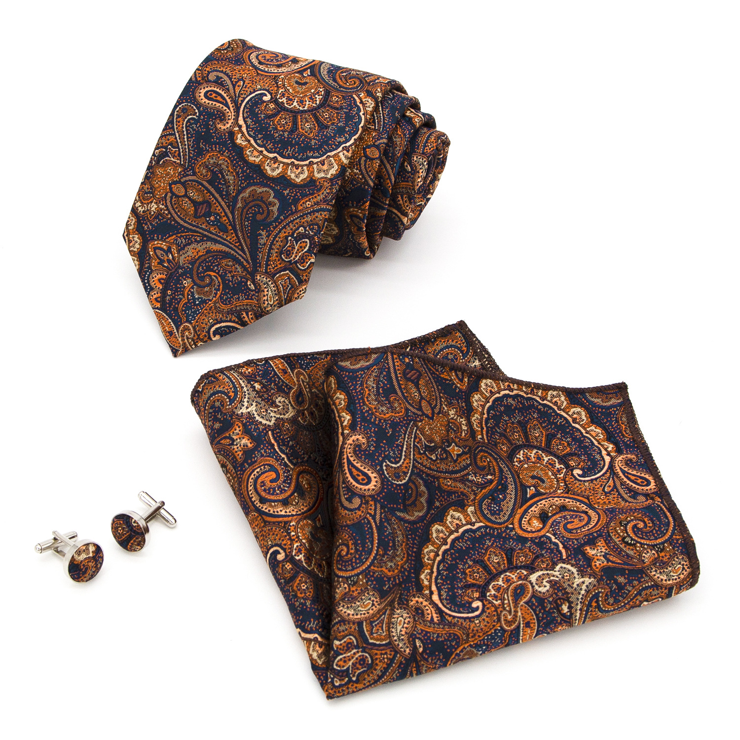 도매 넥타이 세트에는 넥타이 포켓 타월 커프스 단추 3피스 세트가 포함되어 있습니다. 비즈니스에 적합한 페이즐리 패턴