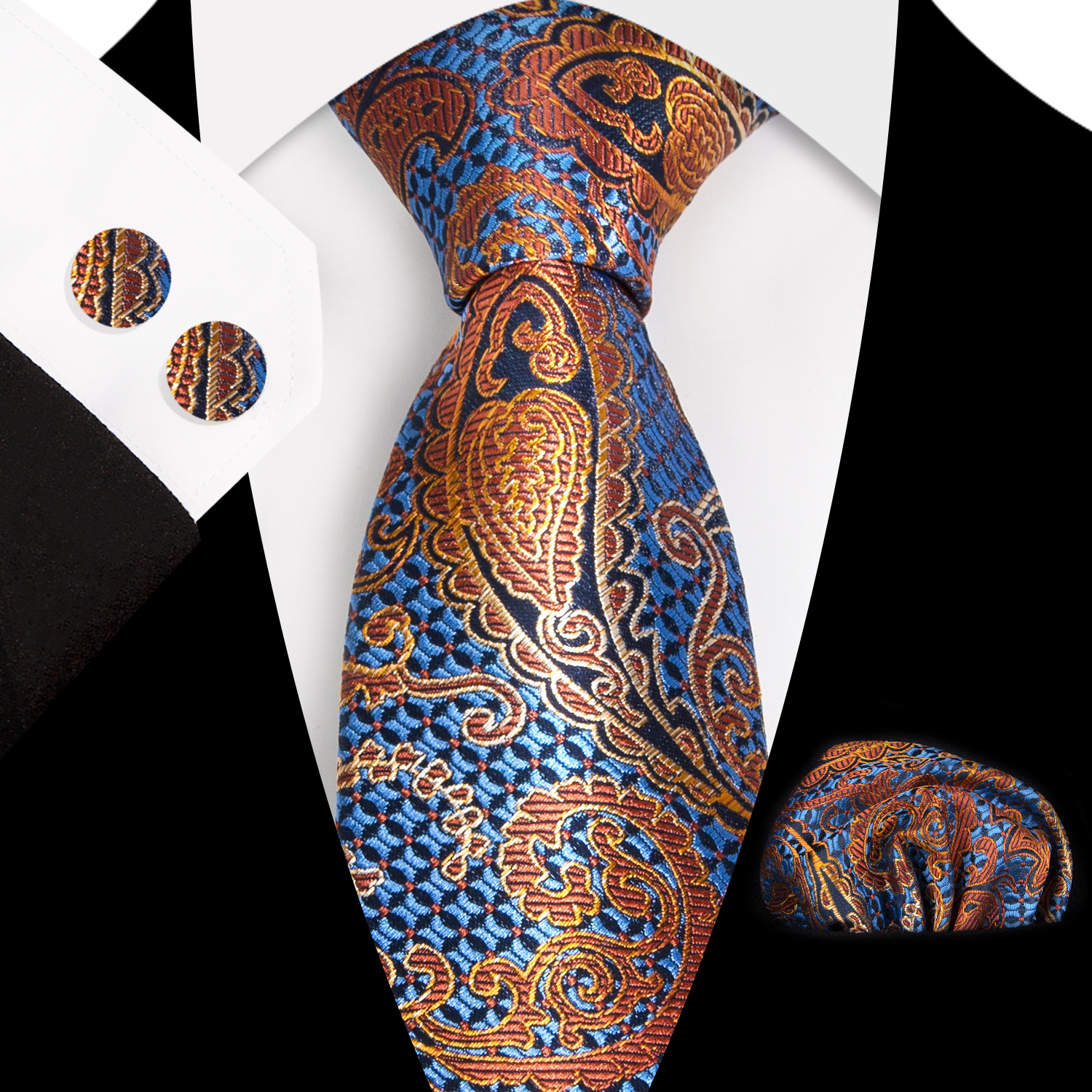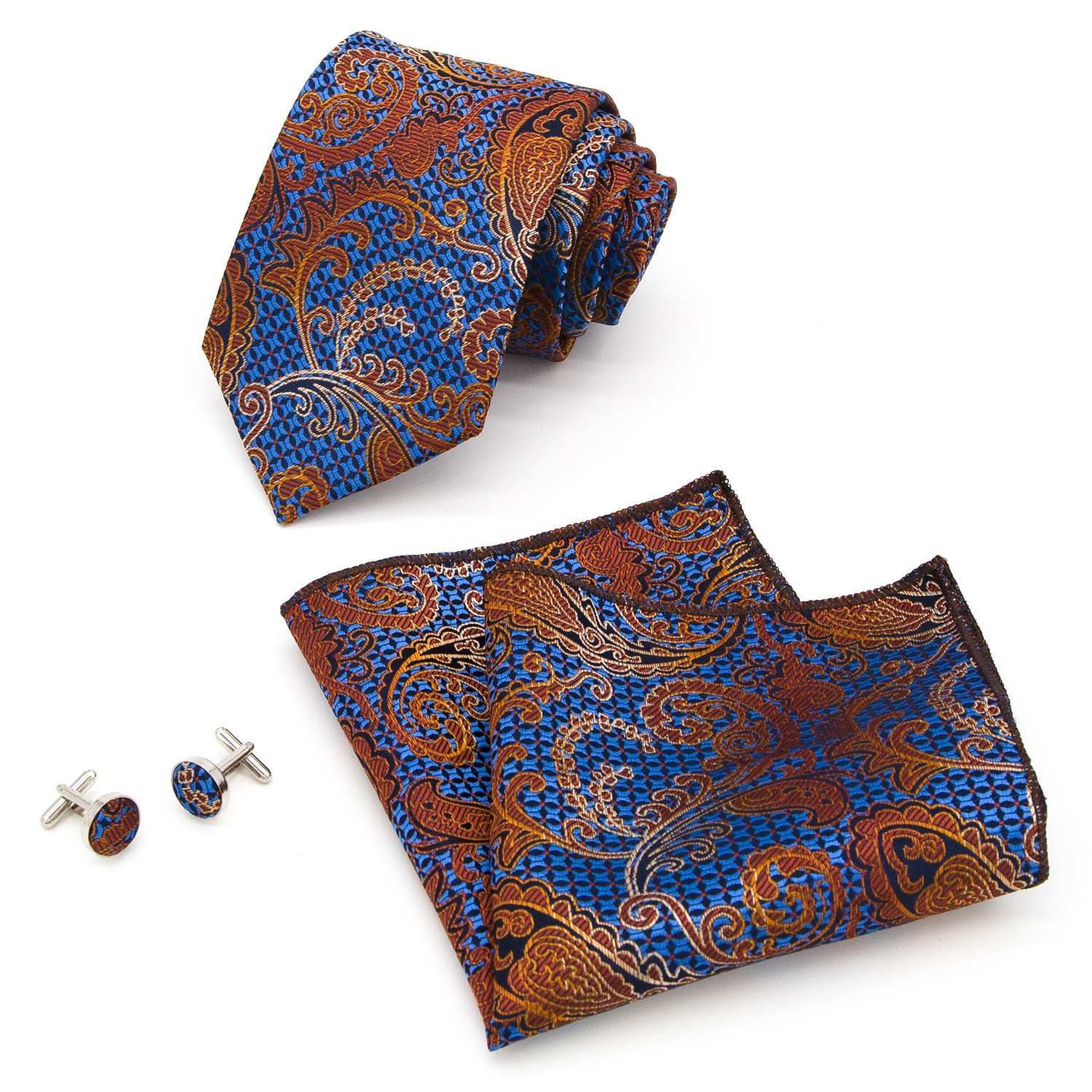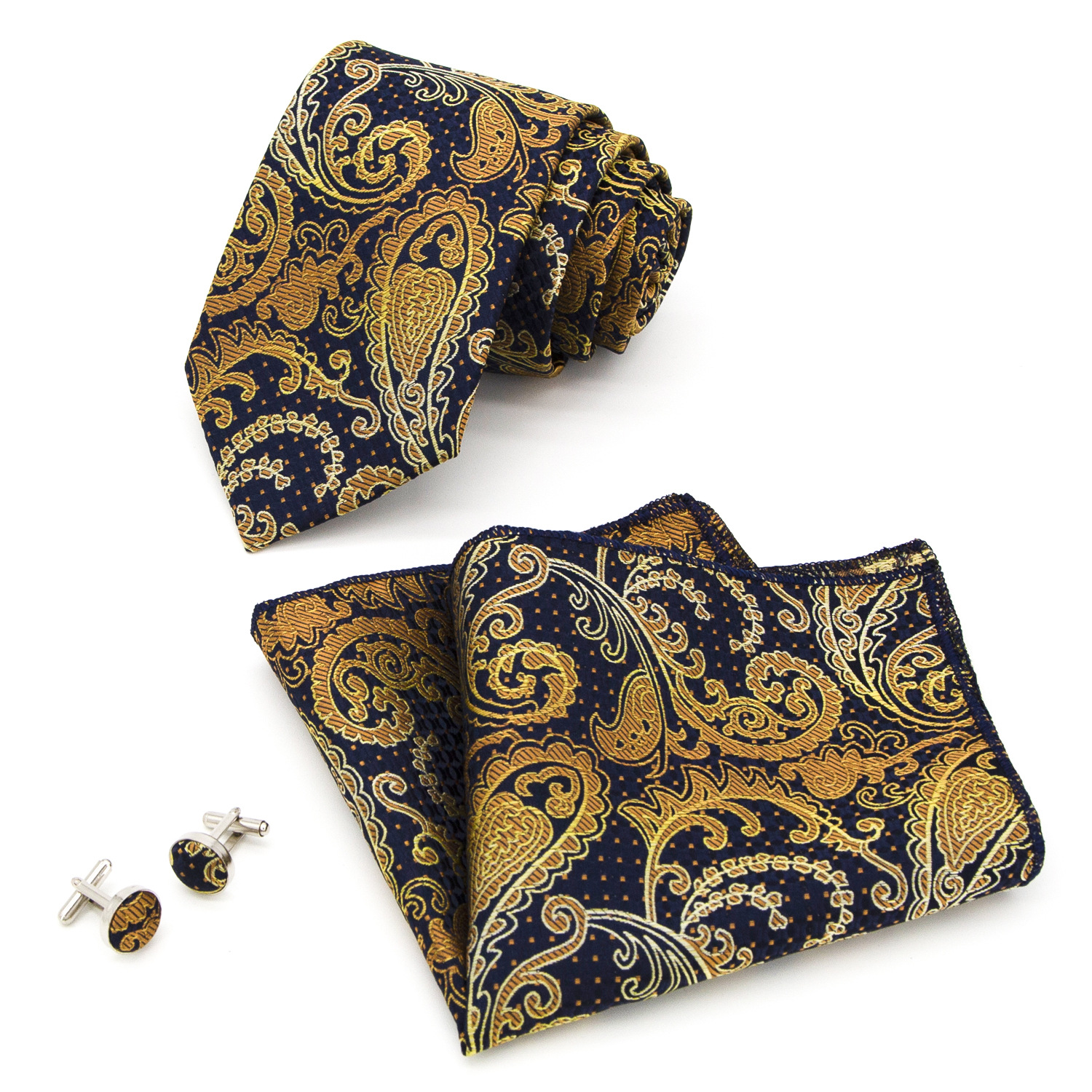 도매 넥타이 세트에는 넥타이 포켓 타월 커프스 단추 3피스 세트가 포함되어 있습니다. 비즈니스에 적합한 페이즐리 패턴스토어 가기