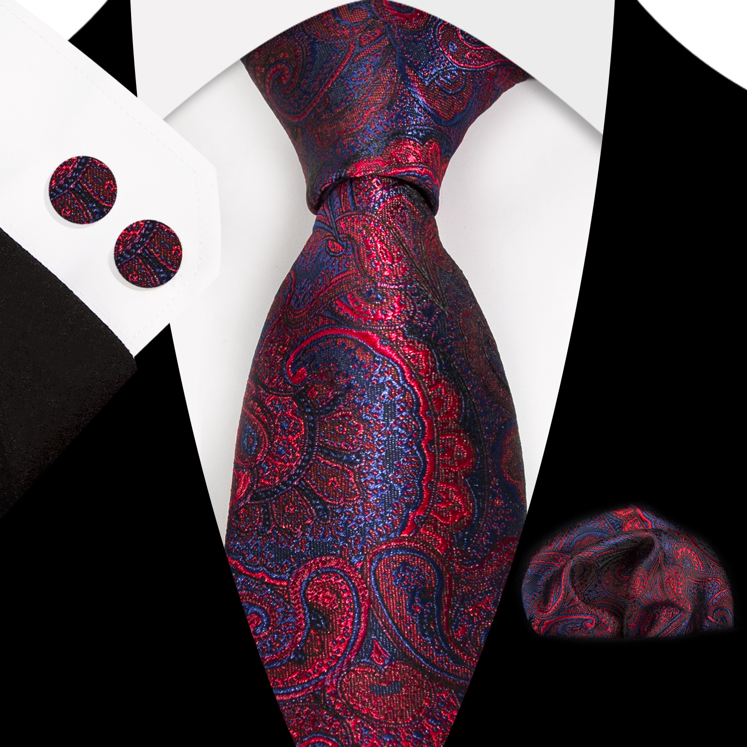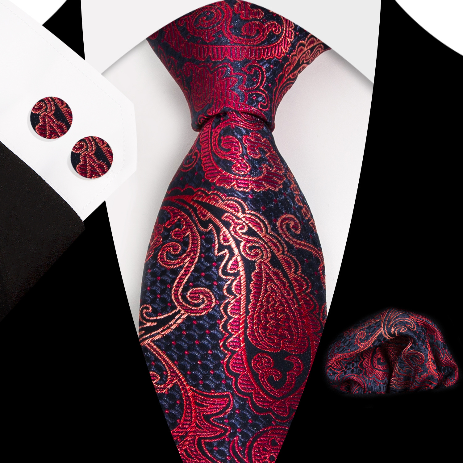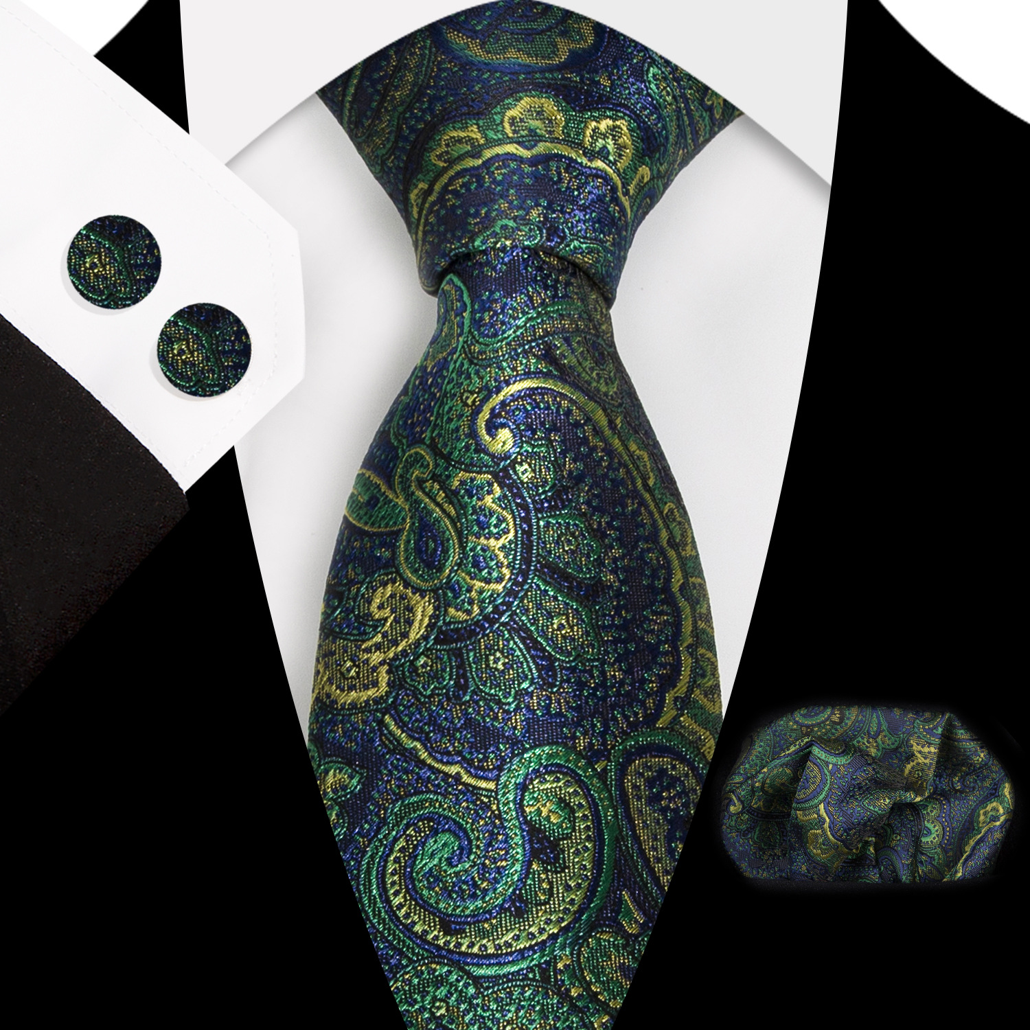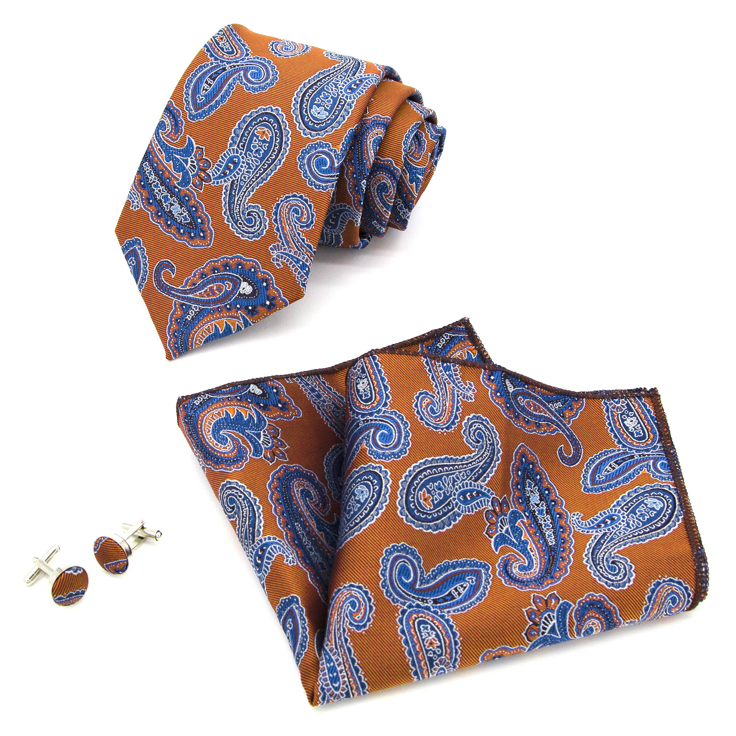 도매 넥타이 세트에는 넥타이 포켓 타월 커프스 단추 3피스 세트가 포함되어 있습니다. 비즈니스에 적합한 페이즐리 패턴스토어 가기